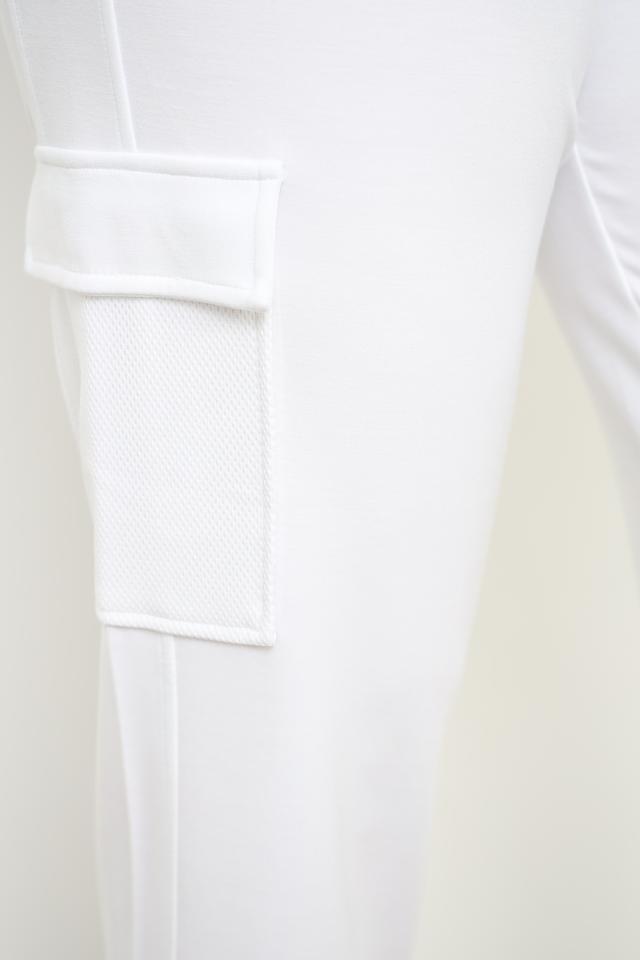 Белые брюки карго от Thomas Rabe — удобная и стильная модель с боковыми карманами. Изготовлены из мягкой ткани с добавлением модала и эластана для комфорта и свободы движений. Состав: полиэстер 50%, модал 44%, эластан 6%