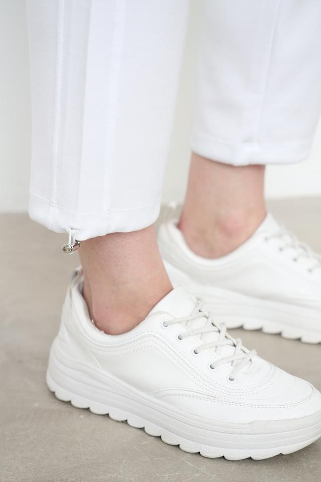 Модал придает ткани мягкость и приятные тактильные ощущения, а эластан обеспечивает эластичность и свободу движений. Эти брюки идеально подойдут для повседневной носки, прогулок и активного отдыха. Они сочетаются как со спортивной обувью, так и с более элегантными вариантами.