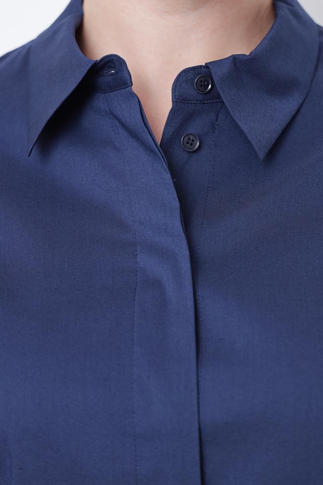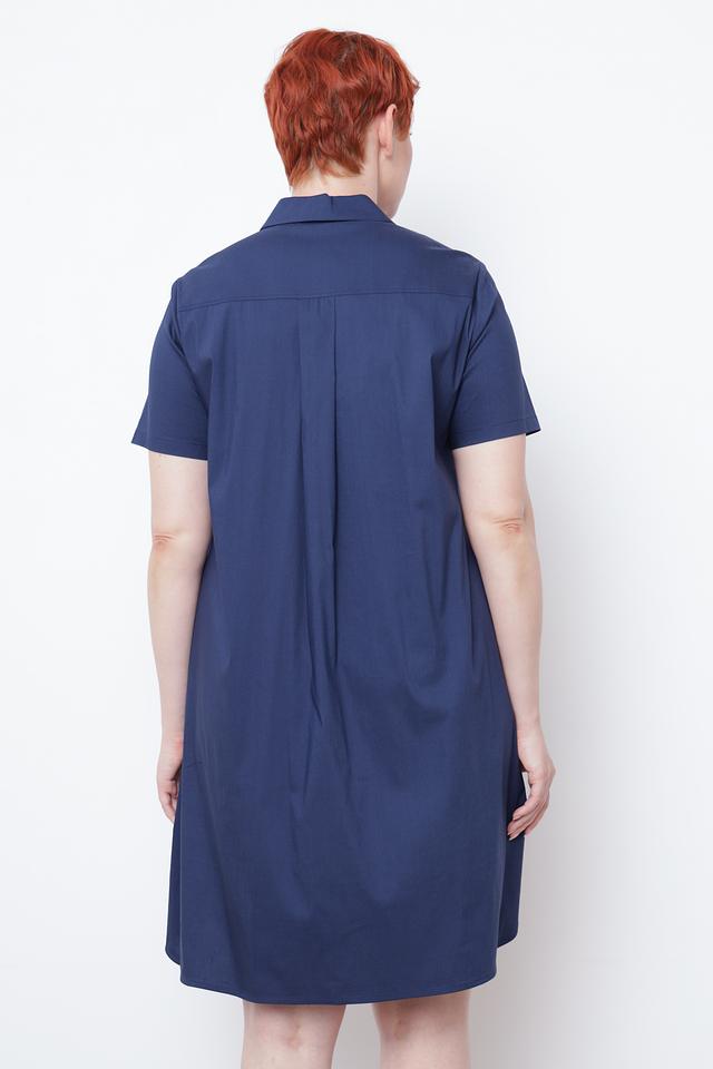 Хлопок обеспечивает комфорт и воздухопроницаемость, полиамид добавляет прочности, а эластан – эластичности и свободы движений. Платье имеет небольшие разрезы по бокам, что придает ему легкость и динамичность. Застежка на пуговицы позволяет регулировать степень прилегания и создавать различные образы.