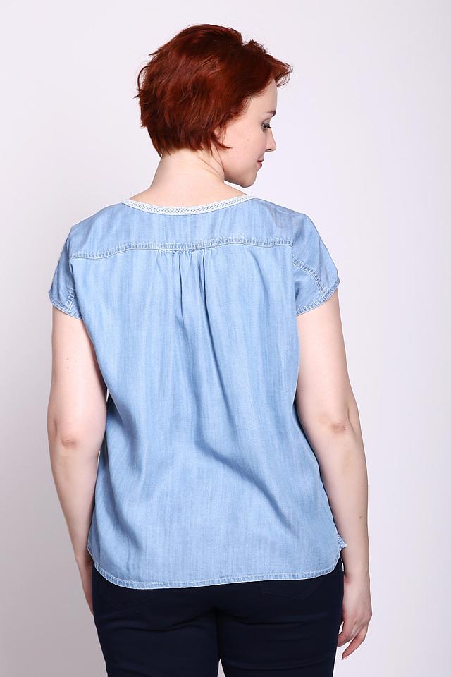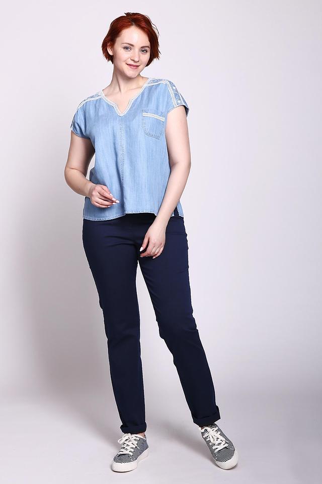Джинсовая блуза Thomas Rabe голубого цвета с короткими рукавами и отделкой кружевом. Модель имеет V-образный вырез и накладной карман. Изготовлена из 100% лиоцела. Состав: лиоцел 100%
