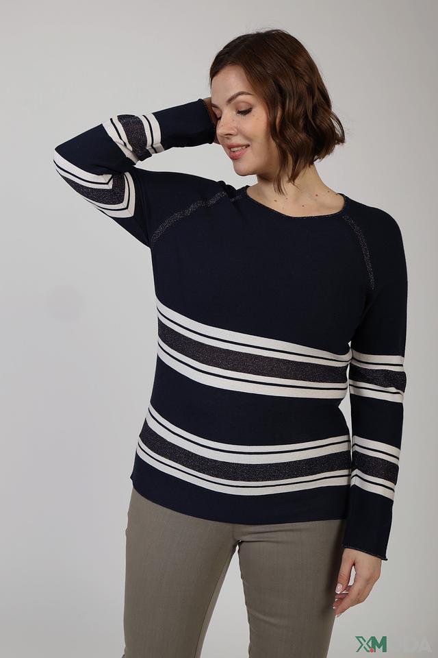 Женский пуловер Thomas Rabe темно-синего цвета с белыми полосами – стильная и комфортная модель на каждый день. Изготовлен из мягкого трикотажа с добавлением модала и полиакрила, обеспечивающего приятные тактильные ощущения и долговечность. Состав: модал 40%, полиакрил 35%, полиамид 12%, вискоза 9%, полиэстер 2%, сизаль 2%