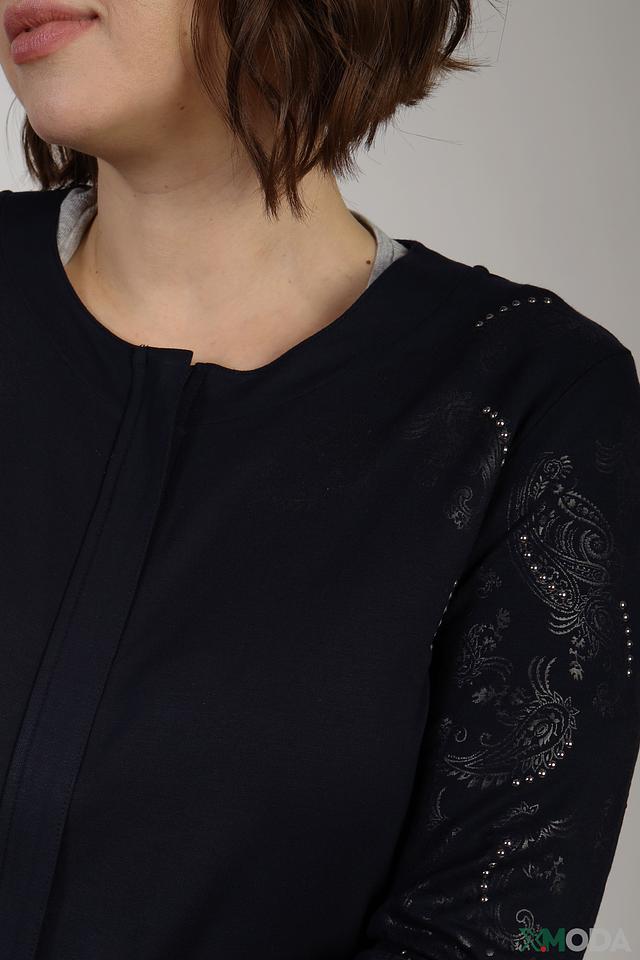 Жакет Thomas Rabe темно-синего цвета – стильная и удобная модель с вышивкой и отделкой стразами. Жакет выполнен из мягкой вискозы с добавлением эластана, что обеспечивает комфортную посадку и свободу движений. Состав: вискоза 94%, эластан 6%