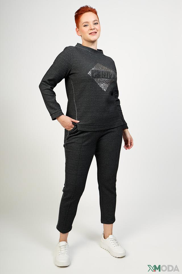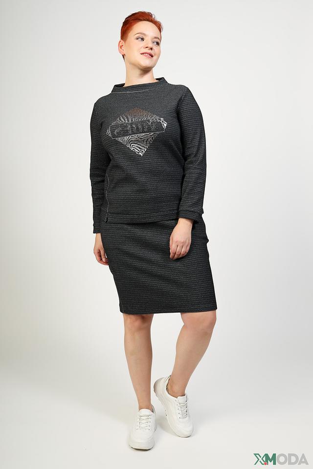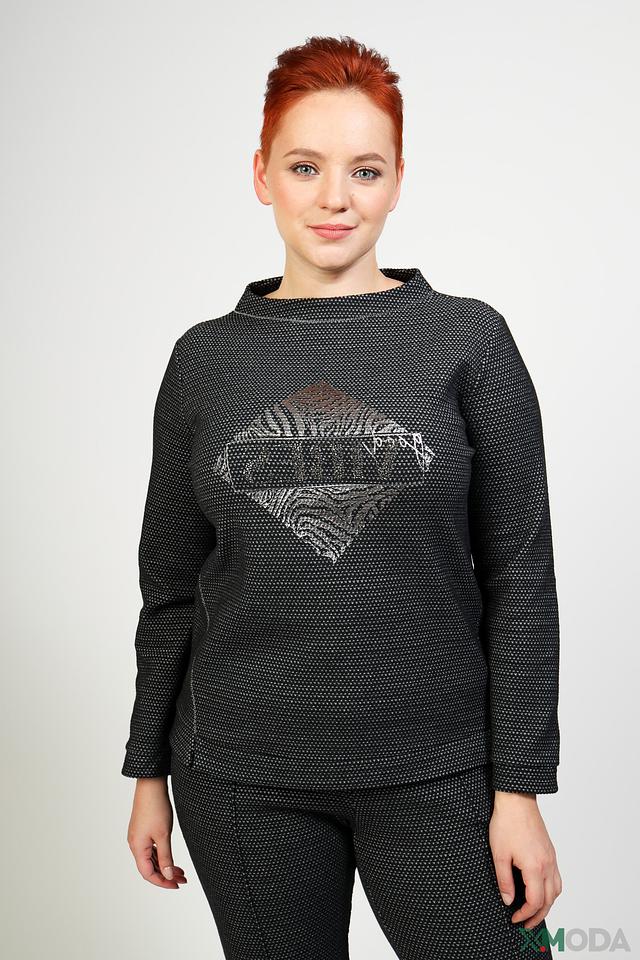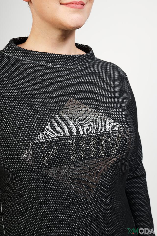Пуловер имеет классический крой с округлым вырезом горловины и длинными рукавами. Его отличает оригинальный принт с изображением животного, выполненный в серебристых тонах, который добавляет образу изысканности и индивидуальности.