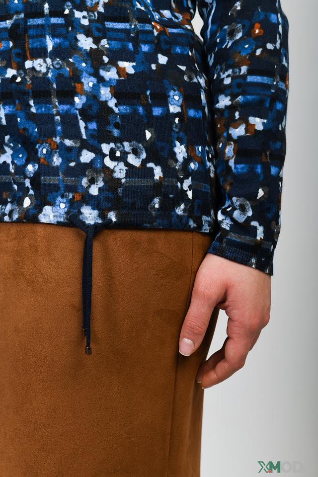 Женский пуловер Thomas Rabe синего цвета с оригинальным принтом в клетку и цветочный узор. Изготовлен из мягкой вискозы с добавлением полиамида для комфорта и долговечности. Состав: вискоза 80%, полиамид 20%