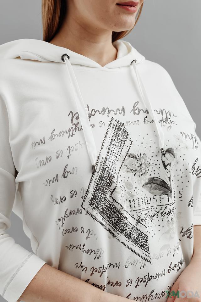 Белый пуловер от Thomas Rabe с оригинальным принтом и капюшоном станет отличным дополнением к вашему гардеробу. Модель выполнена из мягкого и приятного к телу сочетания хлопка и модала, обеспечивая комфорт в носке. Состав: хлопок 48%, модал 48%, эластан 4%