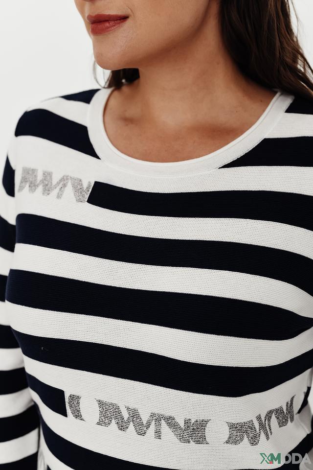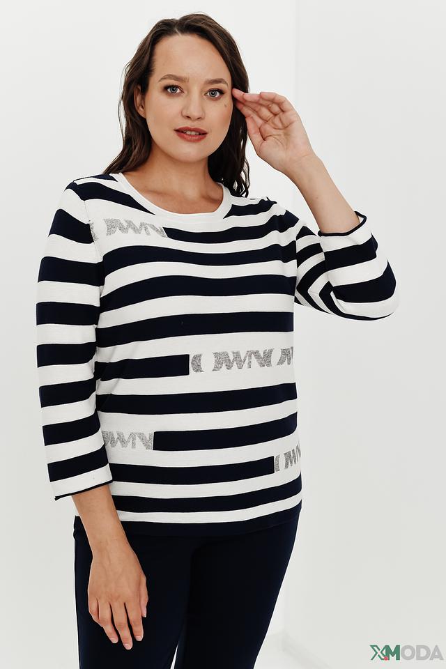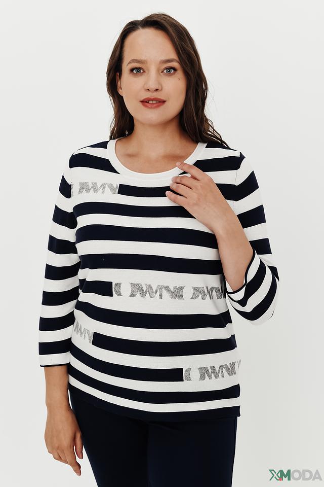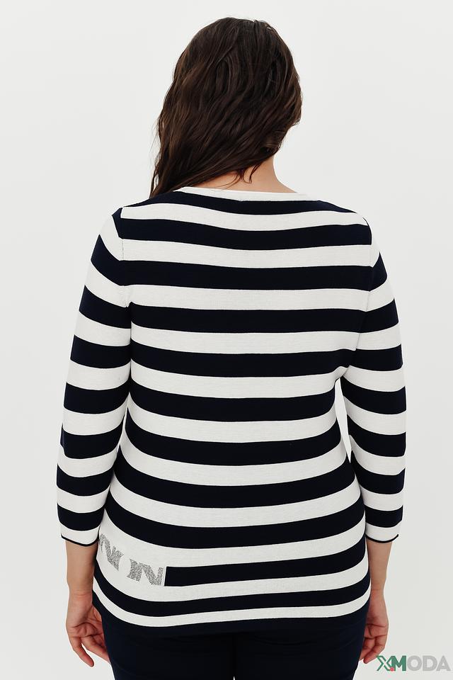 Женский пуловер Thomas Rabe сине-белого цвета с полоской и декоративной надписью. Модель выполнена из мягкого хлопка с добавлением полиакрила, что обеспечивает комфорт и удобство в носке. Состав: хлопок 50%, полиакрил 50%