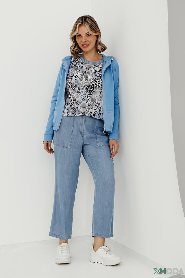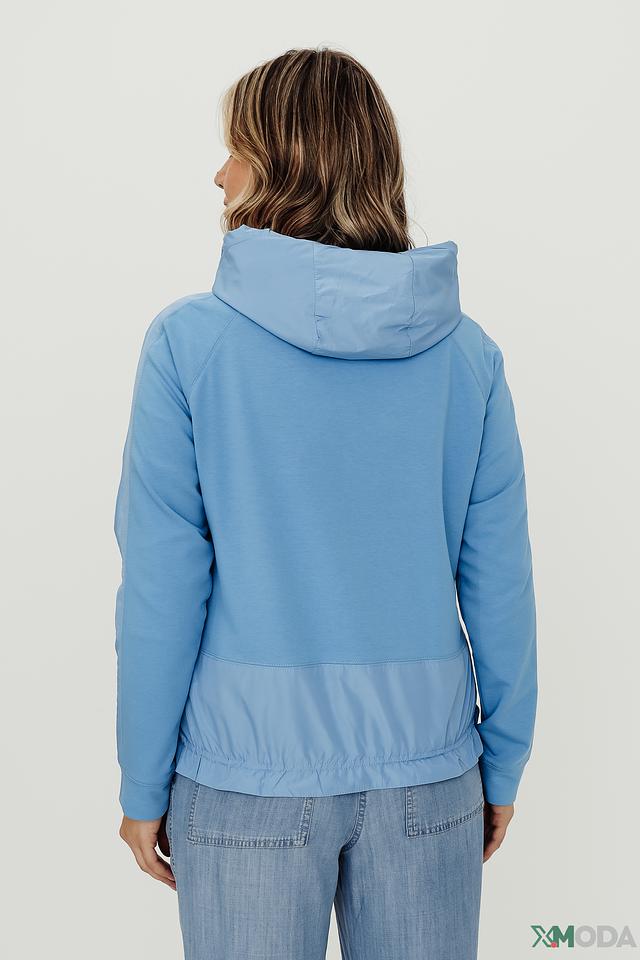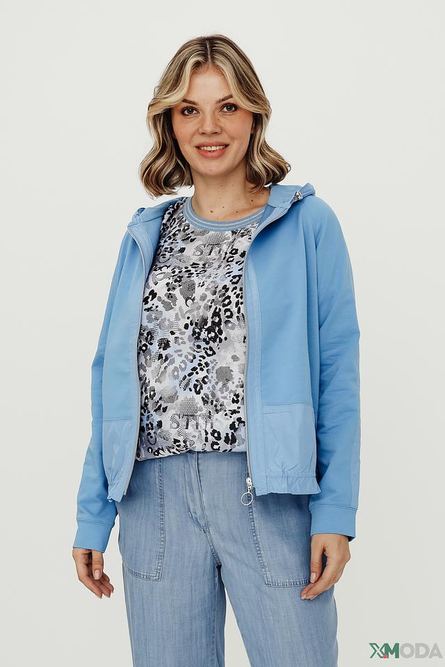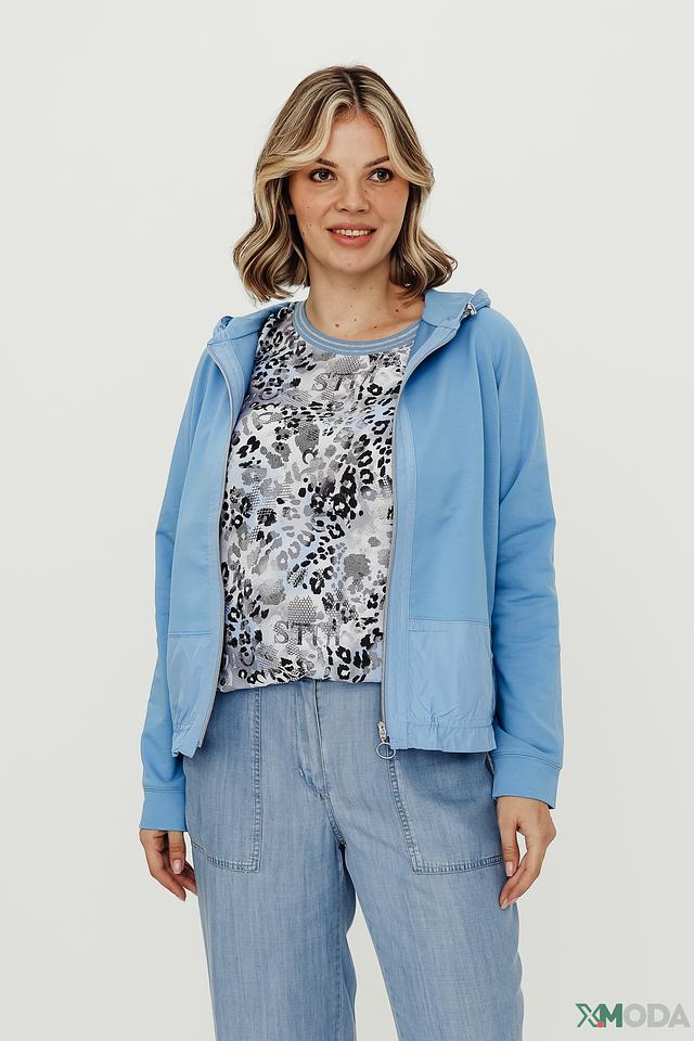 Женский жакет Thomas Rabe голубого цвета с капюшоном и застежкой-молнией. Модель выполнена из мягкой ткани с добавлением хлопка, полиэстера и эластана, обеспечивающих комфорт и свободу движений. Состав: хлопок 75%, полиэстер 15%, эластан 10%