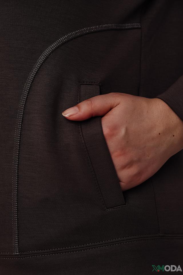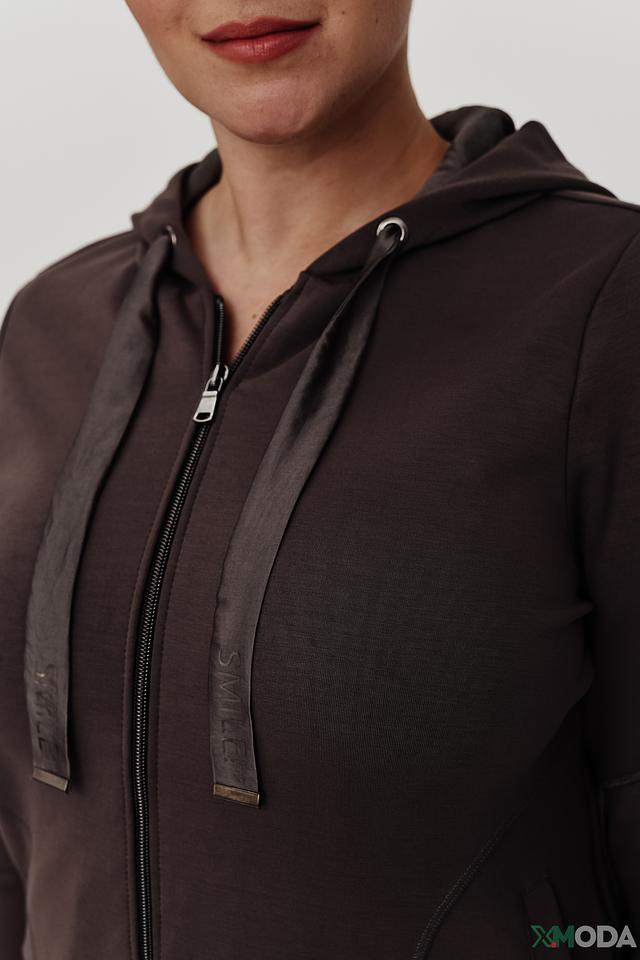 Толстовка имеет удобную застежку-молнию, капюшон и длинные рукава. Модель выполнена из высококачественного материала, состоящего из модала, полиэстера и эластана, что обеспечивает комфорт и свободу движений.