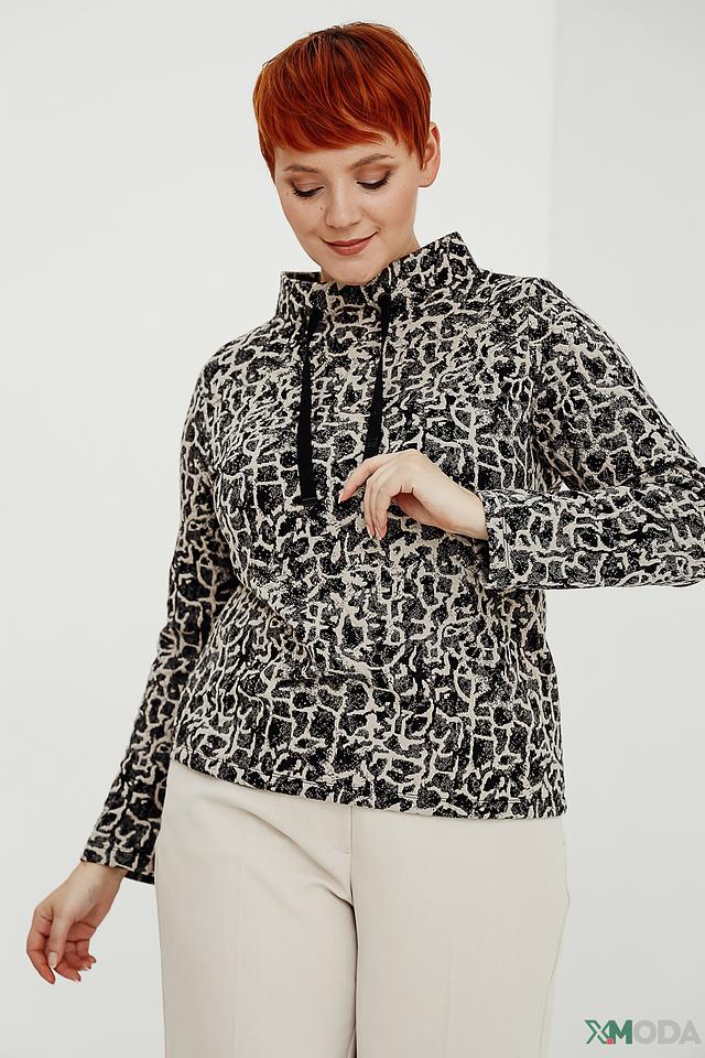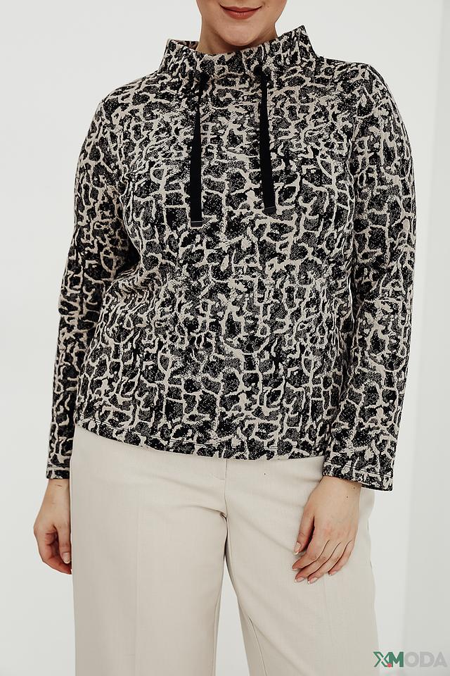 Женский пуловер Thomas Rabe чёрно-белого цвета с оригинальным принтом и воротником-стойкой. Модель выполнена из мягкого и приятного к телу сочетания полиэстера и вискозы, обеспечивающего комфорт в носке. Состав: полиэстер 70%, вискоза 28%, эластан 2%