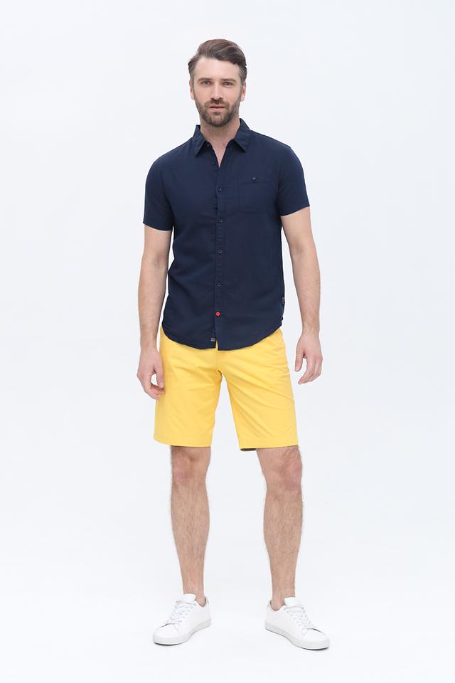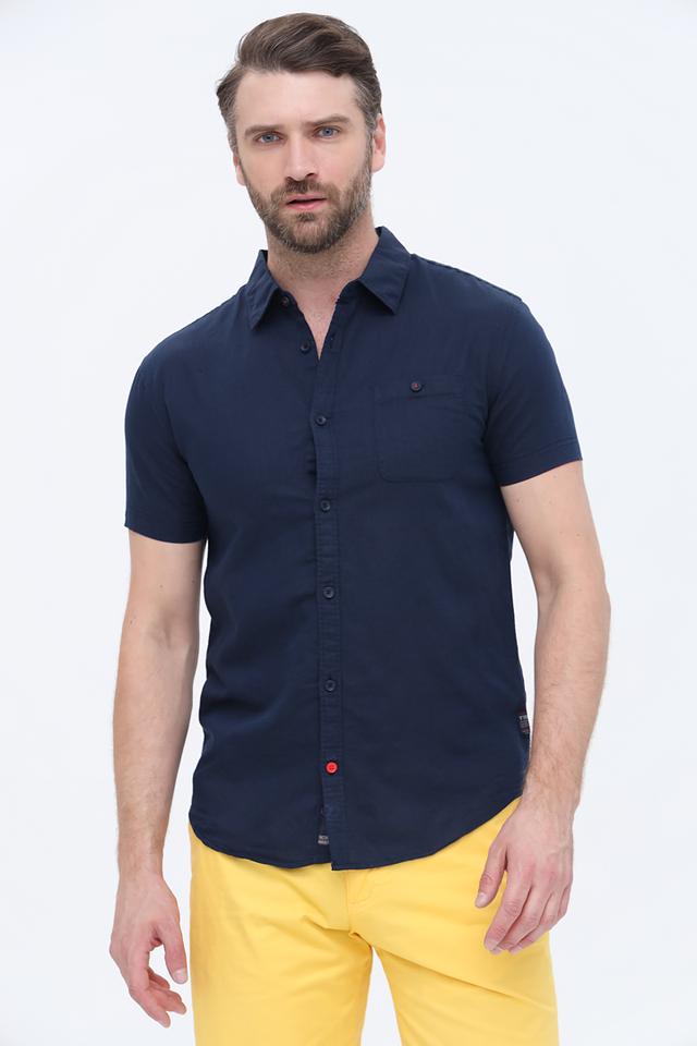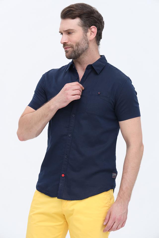 Мужская рубашка Time Zone синего цвета с коротким рукавом – это стильное и комфортное решение для повседневной носки. Изготовлена из натурального смесового материала, обеспечивающего воздухопроницаемость и приятные ощущения на коже. Состав: лен 55%, хлопок 45%