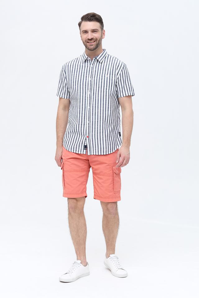 Мужская рубашка Time Zone синего цвета с коротким рукавом выполнена в классическом стиле с вертикальной полоской. Изготовлена из 100% хлопка, обеспечивающего комфорт и воздухопроницаемость. Состав: хлопок 100%
