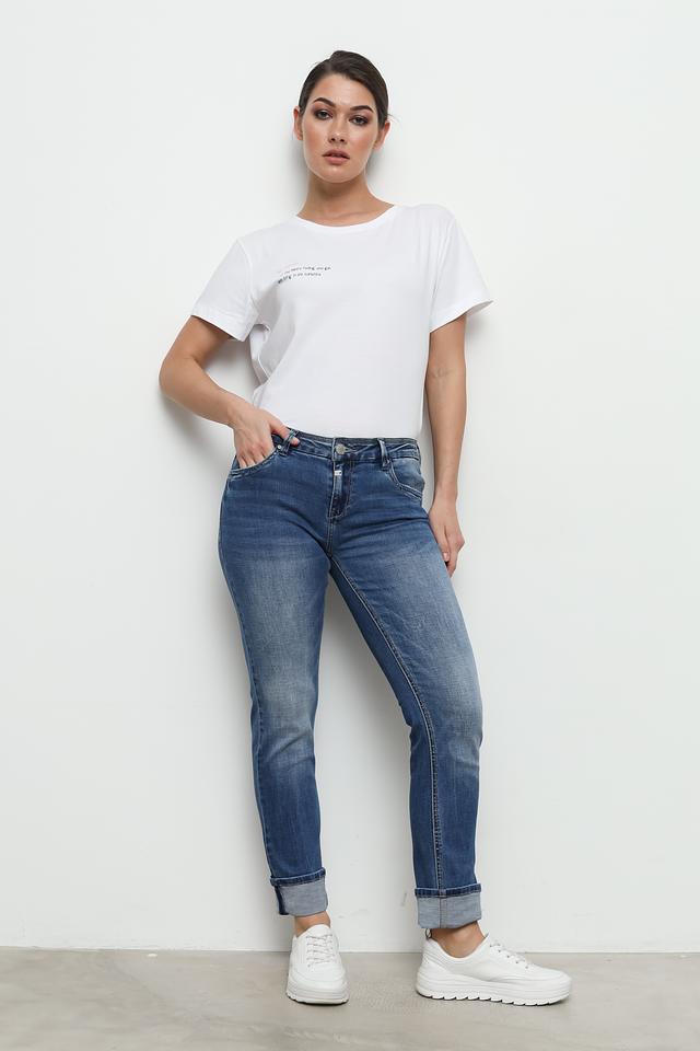 Джинсы имеют зауженный книзу крой, который визуально стройнит ноги и подчеркивает фигуру. Комфортная посадка и наличие 1% эластана в составе обеспечивают свободу движений и приятные ощущения при носке.