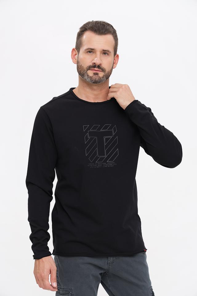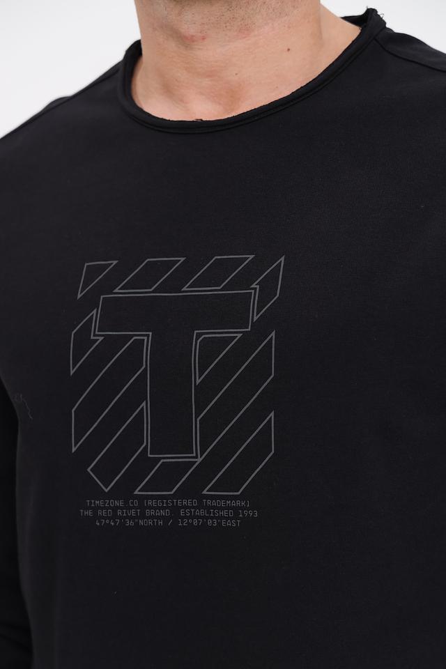 Мужской лонгслив Time Zone чёрного цвета с оригинальным графическим принтом на груди. Изготовлен из мягкого и приятного к телу хлопка, обеспечивающего комфорт в течение всего дня. Состав: хлопок 100%