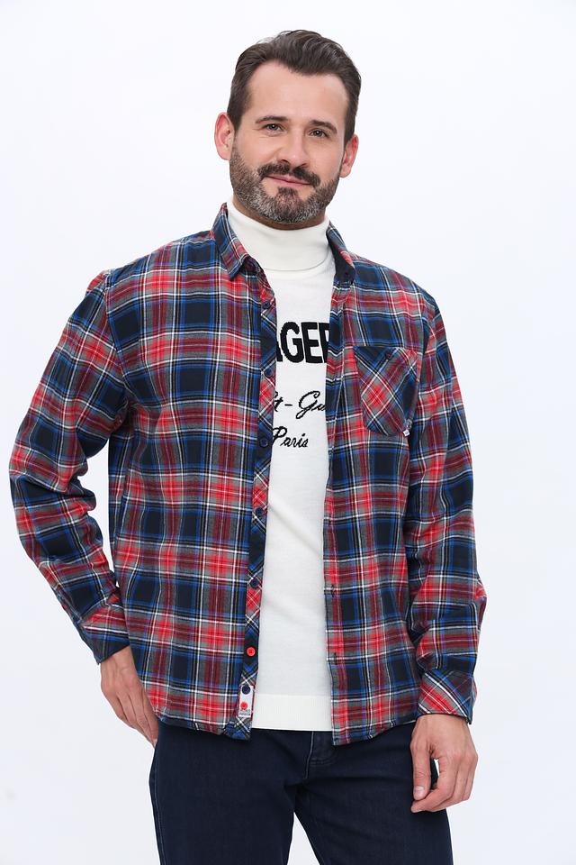 Мужская рубашка Time Zone красного цвета в классическую клетку – стильное и комфортное решение для повседневного образа. Изготовлена из хлопка с добавлением лайкры для удобства носки и сохранения формы. Состав: хлопок 97%, лайкра 3%