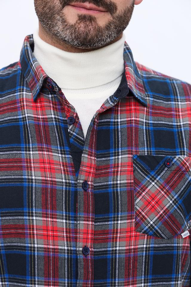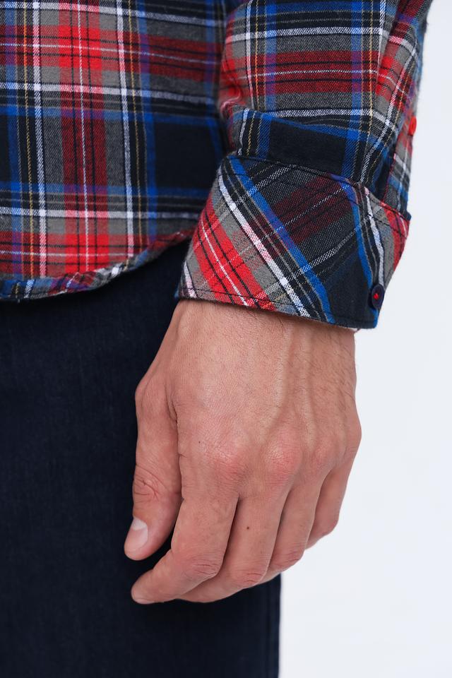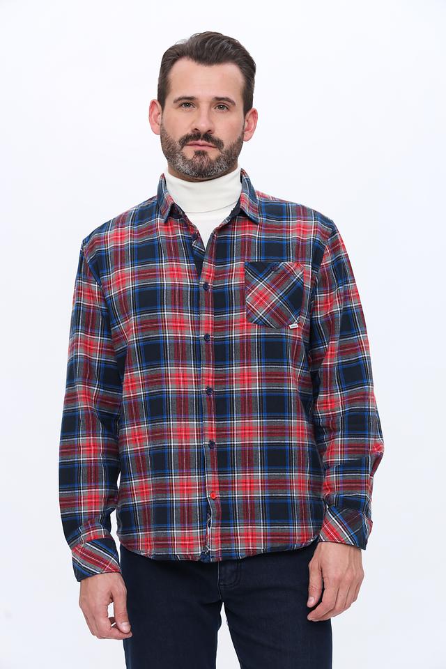 Основной цвет рубашки – красный, дополненный синим и белым в клетчатом узоре. Ткань состоит из 97% хлопка и 3% лайкры, что обеспечивает комфорт, воздухопроницаемость и небольшую эластичность.