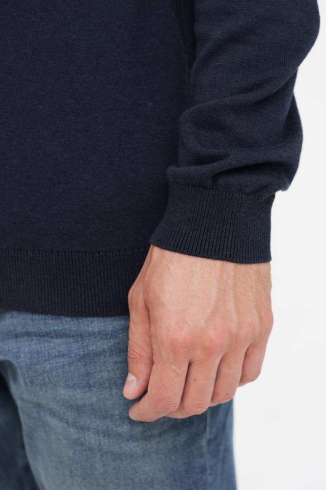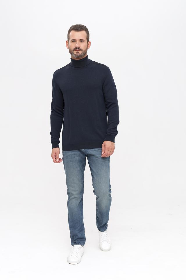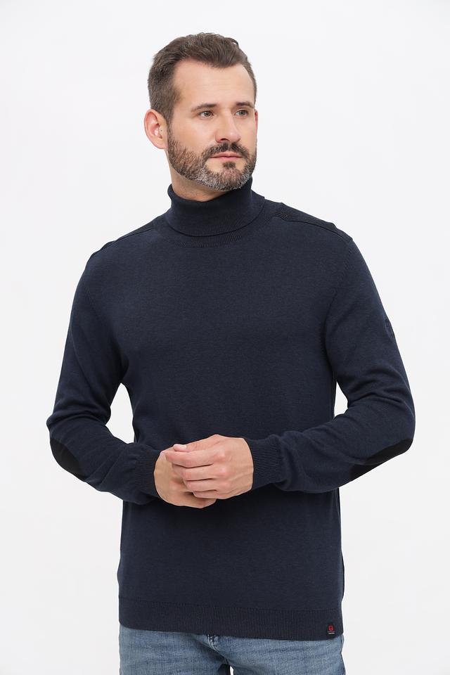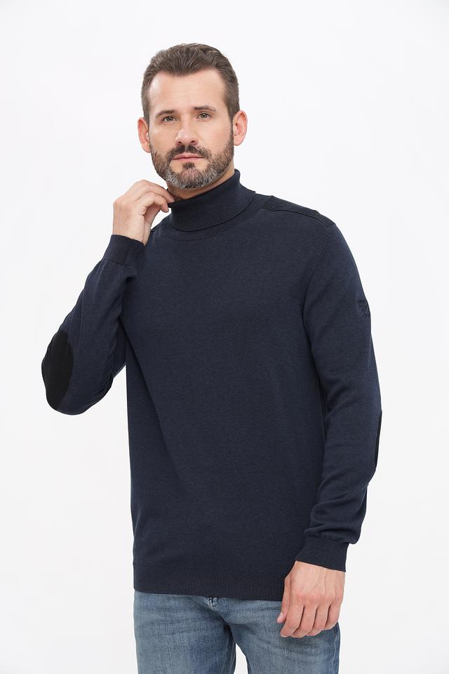 Мужская водолазка Time Zone тёмно-синего цвета с декоративными накладками на плечах. Изготовлена из мягкого и приятного к телу сочетания вискозы и хлопка, обеспечивающего комфорт в носке. Состав: вискоза 50%, хлопок 50%