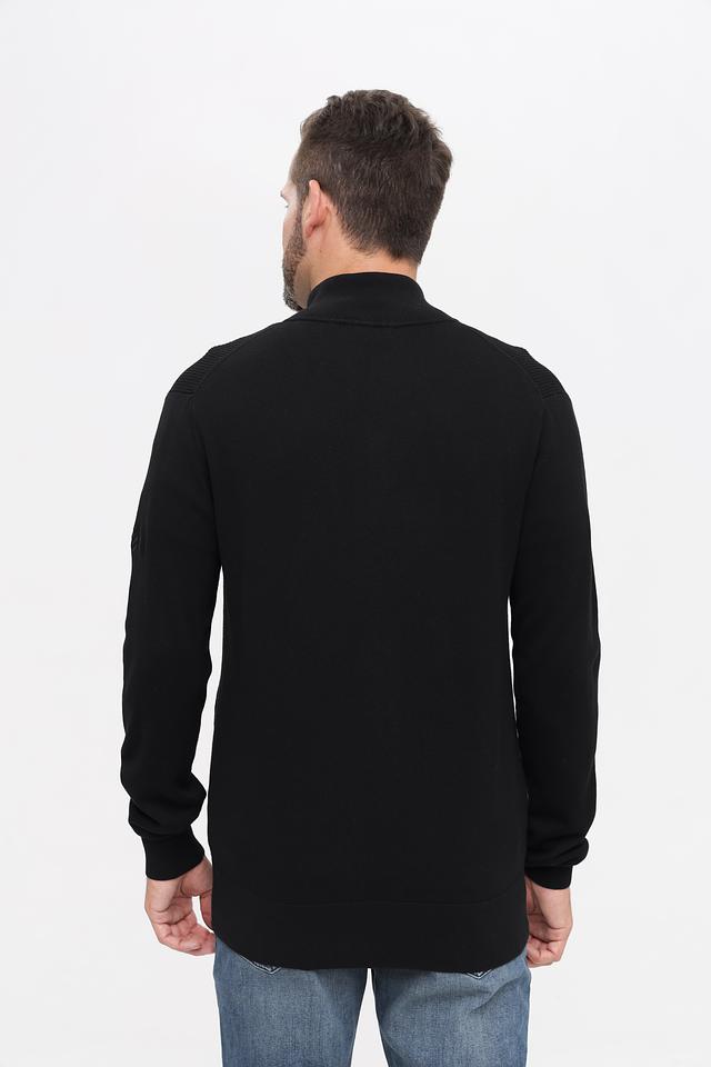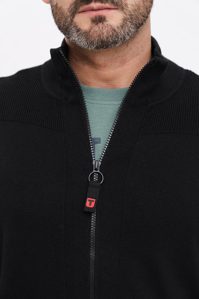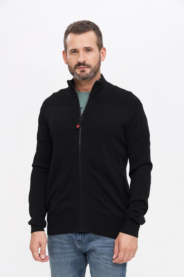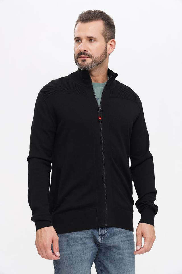 Чёрный кардиган Time Zone с застёжкой на молнии – стильное и практичное решение для создания повседневных образов. Модель выполнена из мягкого трикотажа с текстурной вставкой на плечах, обеспечивающей комфорт и удобство. Состав: хлопок 65%, полиэстер 35%