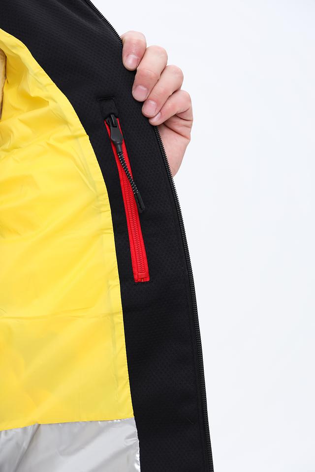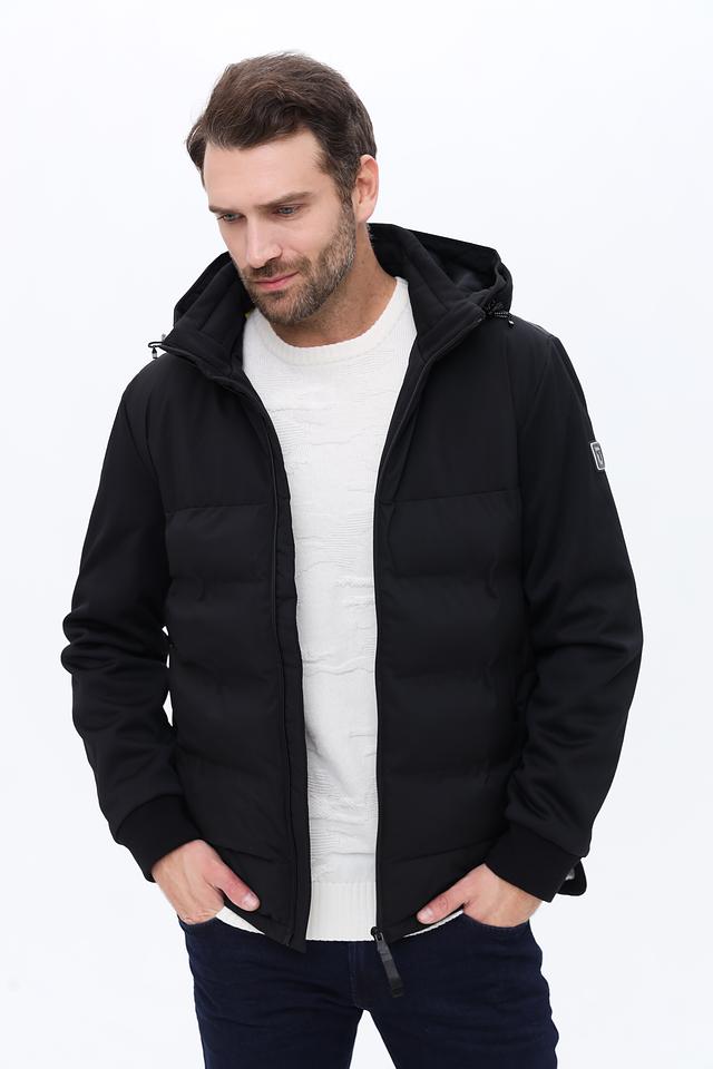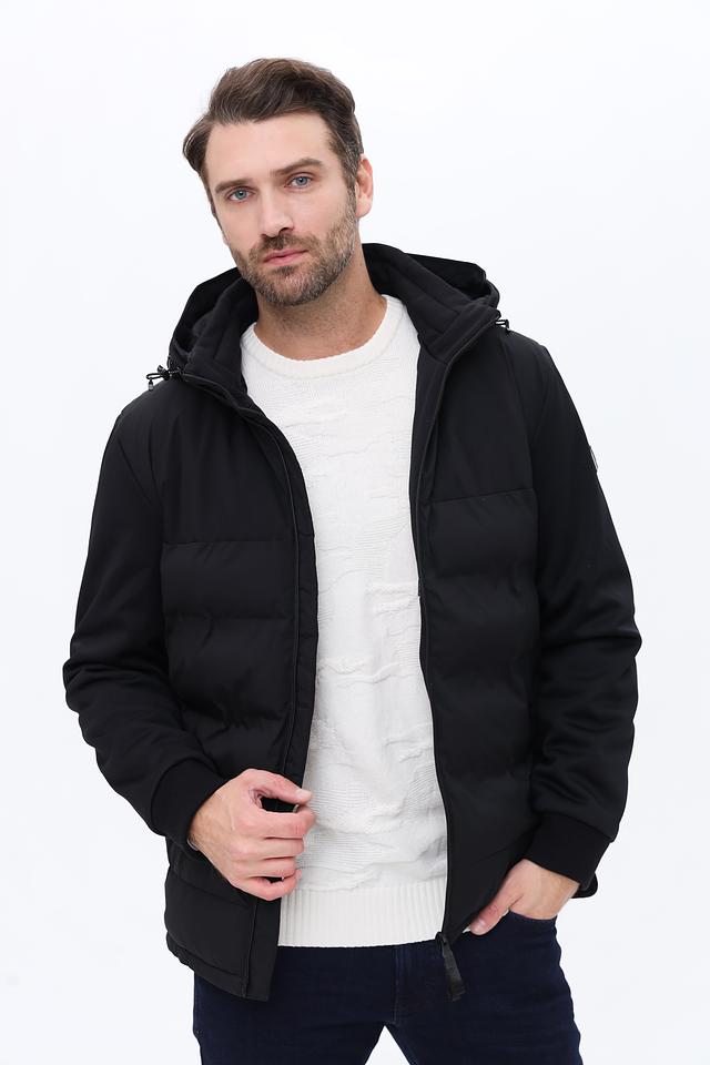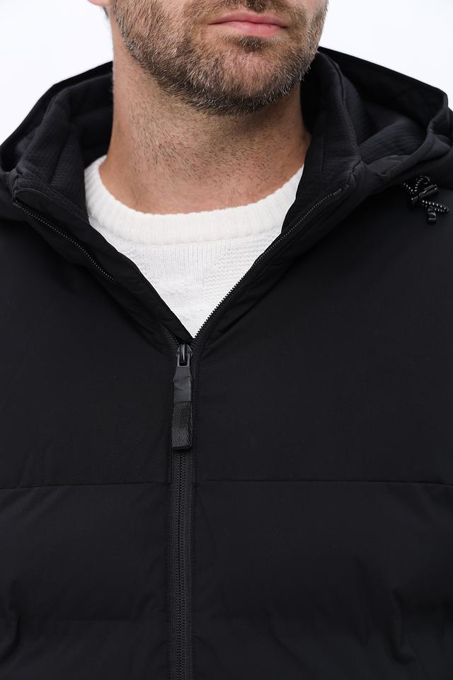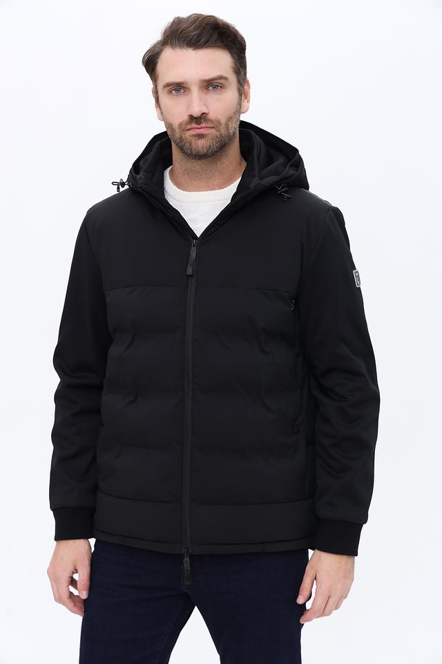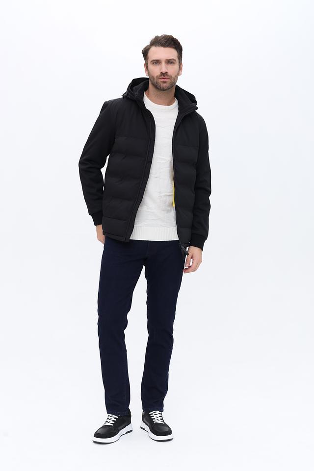 Модель имеет стеганую фактуру на передней части и гладкую на рукавах и спине, что придает ей современный вид. Капюшон регулируется шнурками, обеспечивая надежную защиту от непогоды. Застежка-молния позволяет быстро и удобно надевать и снимать куртку.