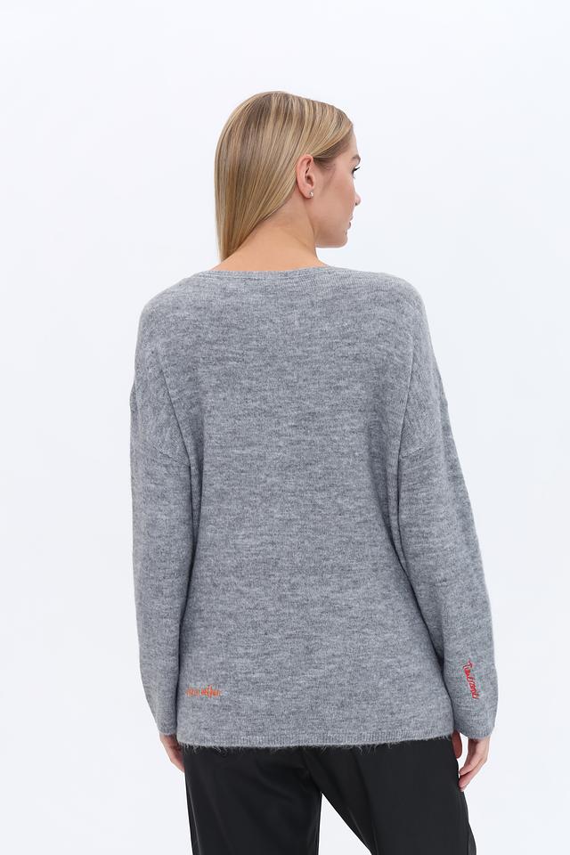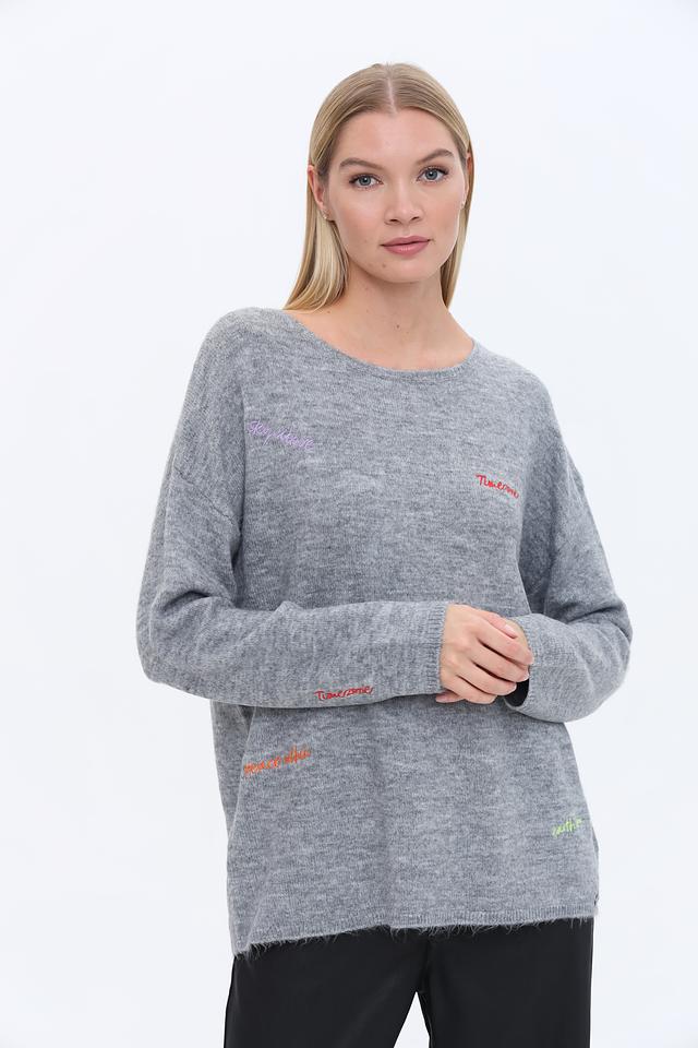 Пуловер имеет свободный крой, который не сковывает движений и позволяет создать расслабленный образ. Серый цвет легко сочетается с другими элементами одежды, а яркая вышивка добавляет индивидуальности.