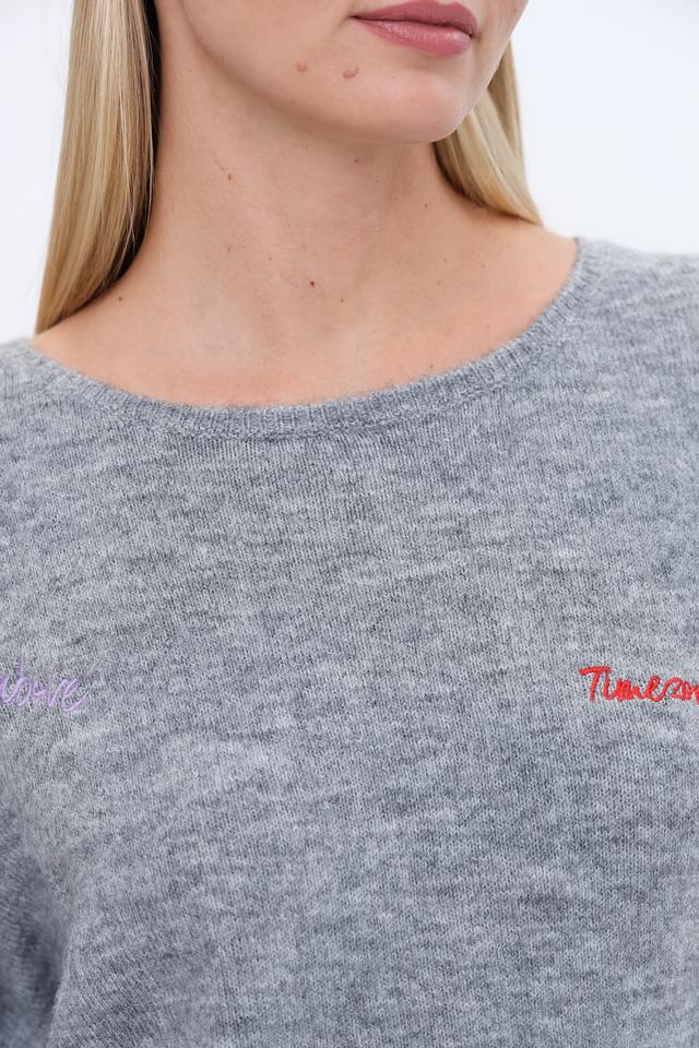Пуловер Time Zone с вышивкой серый