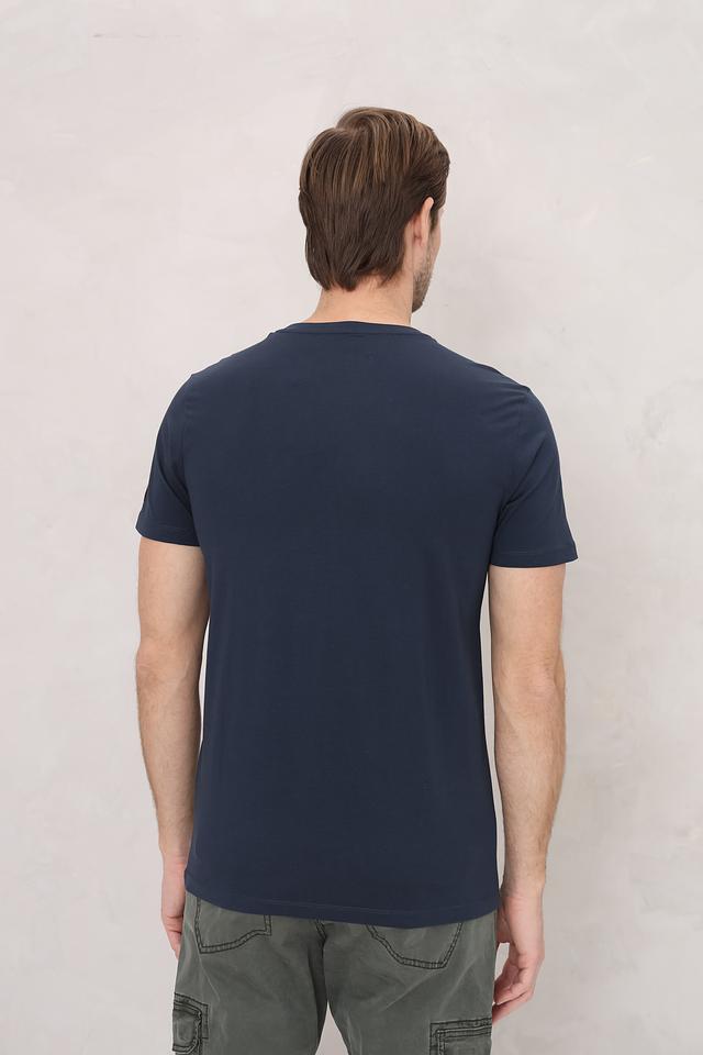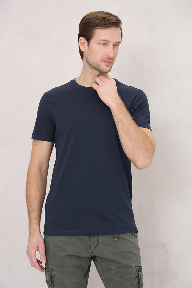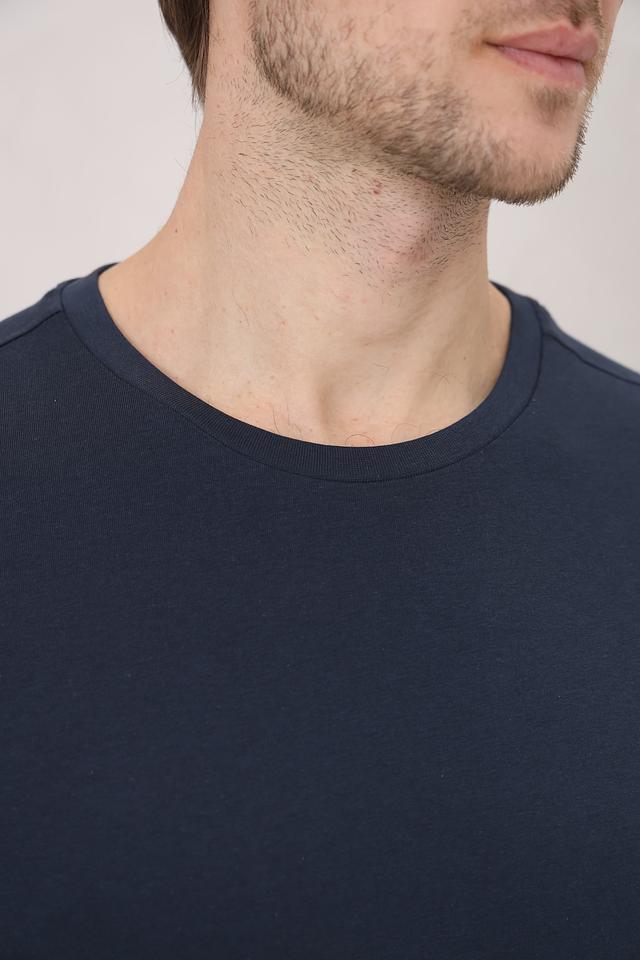 Футболка имеет насыщенный тёмно-синий цвет, который легко сочетается с различными элементами гардероба. Отсутствие каких-либо принтов или логотипов делает эту модель универсальной и подходящей для создания различных образов – от повседневных до более формальных.