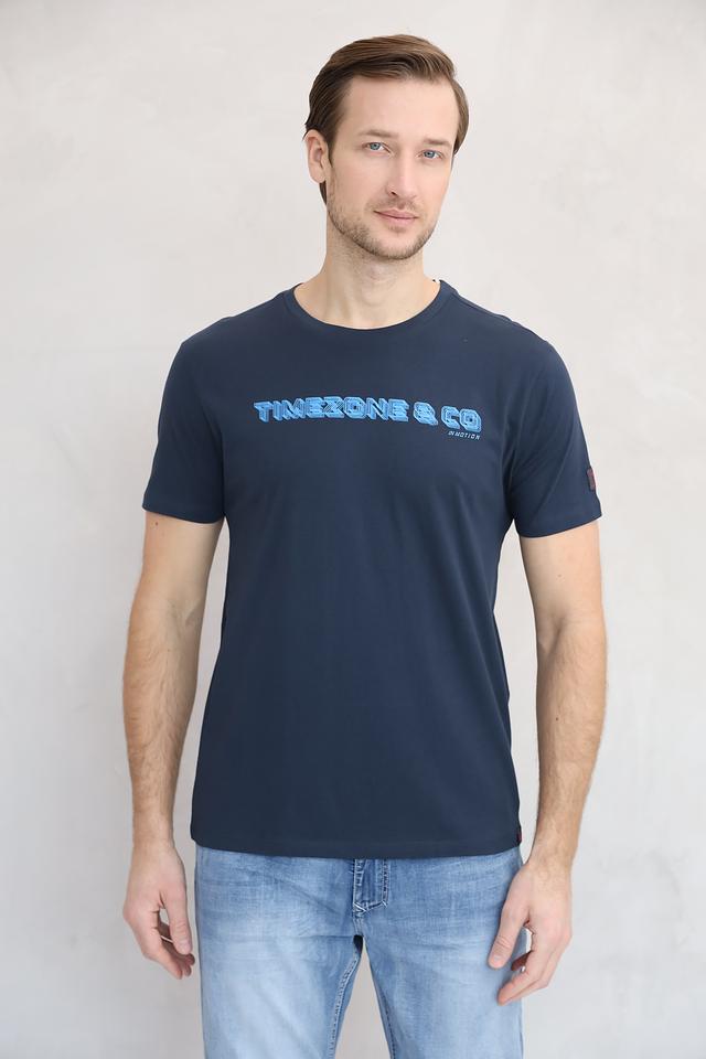 Мужская футболка Time Zone синего цвета с оригинальным логотипом. Изготовлена из 100% хлопка, обеспечивающего комфорт и воздухопроницаемость. Отличный выбор для повседневного гардероба. Состав: хлопок 100%