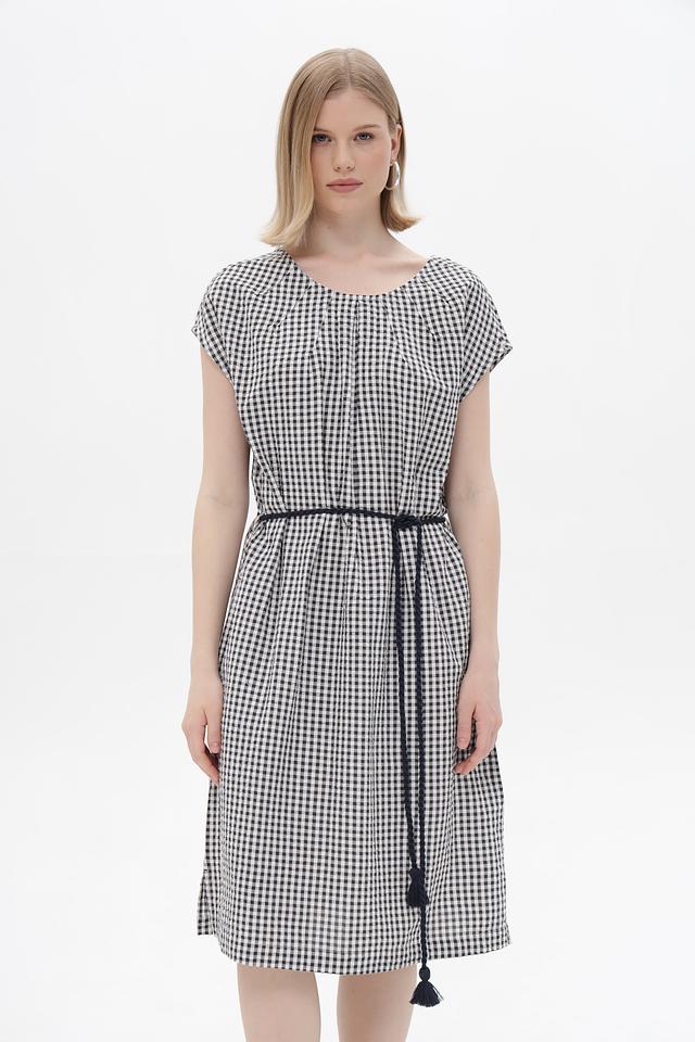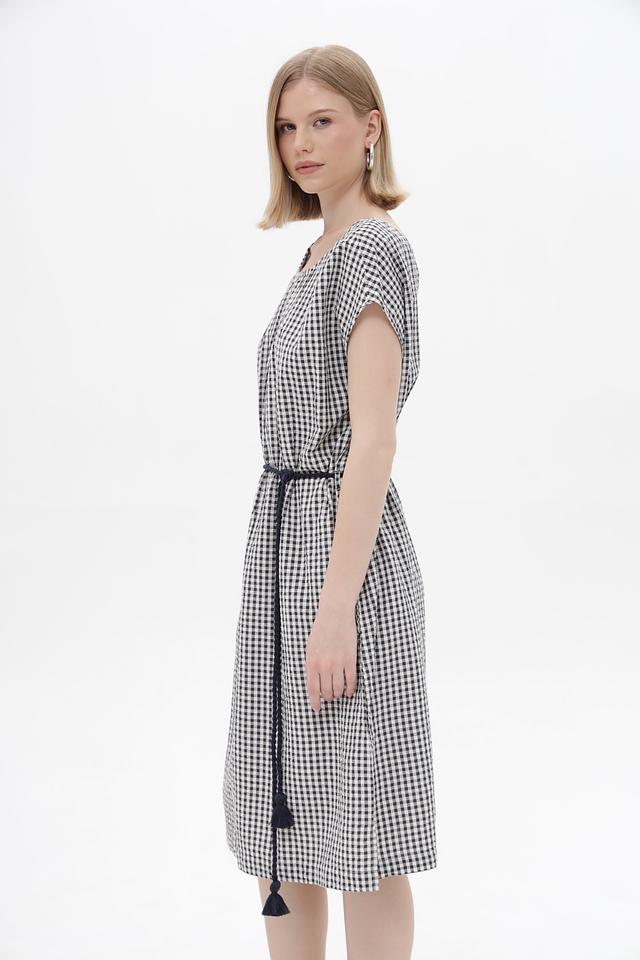 Это платье от Time Zone выполнено в классическом стиле и станет отличным дополнением к вашему гардеробу. Основной цвет – белый, дополненный чёрным клетчатым принтом.