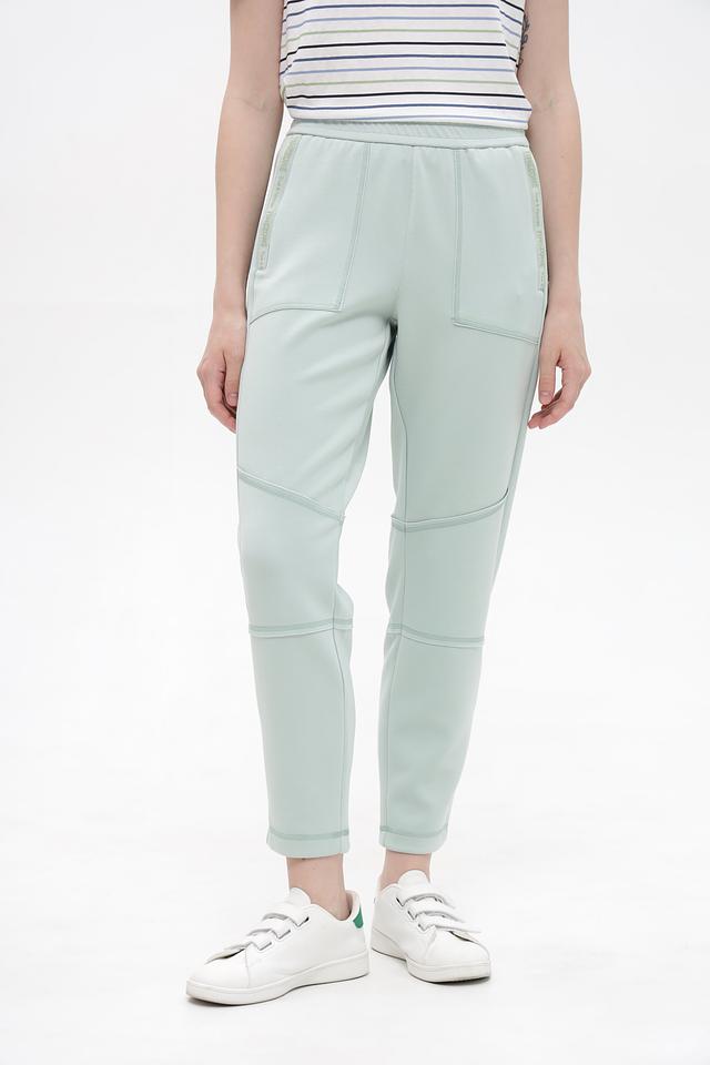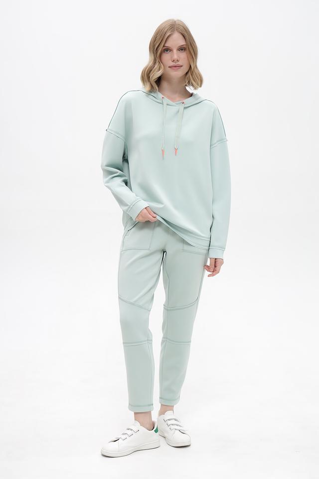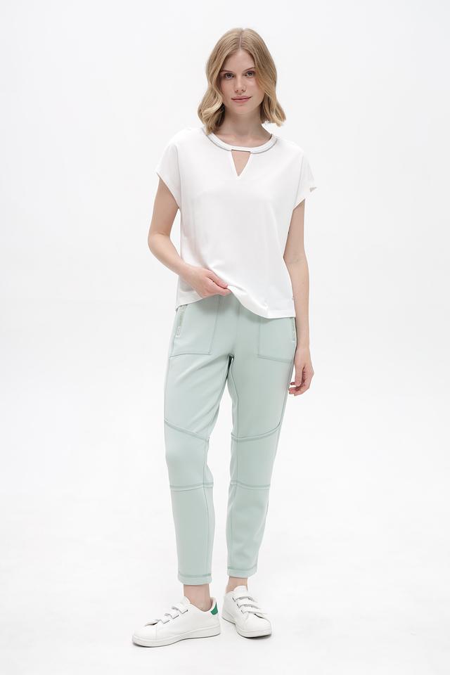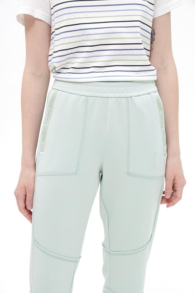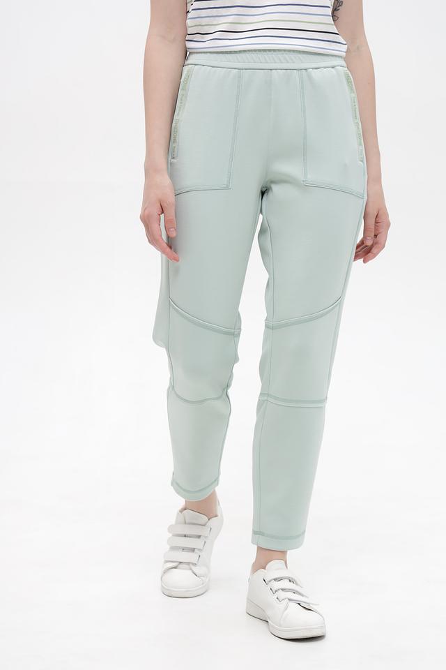 Женские брюки Time Zone мятного цвета – удобная и стильная модель с декоративными вставками. Изготовлены из мягкой ткани с добавлением эластана для комфортной посадки и свободы движений. Состав: полиэстер 48%, модал 48%, эластан 4%