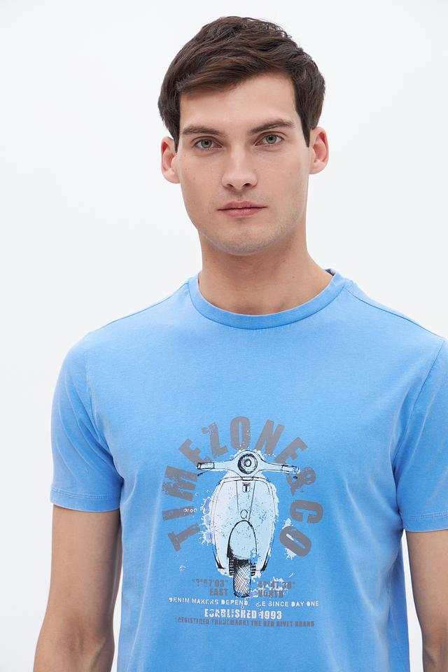Эта стильная футболка от Time Zone станет отличным дополнением к вашему гардеробу. Она выполнена в приятном голубом цвете и украшена оригинальным принтом с изображением мотороллера, что придает ей индивидуальность.