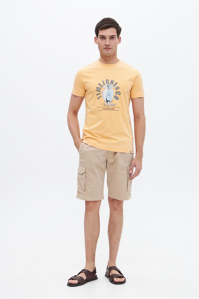 Мужская футболка Time Zone светло-жёлтого цвета с ярким принтом. Изготовлена из 100% хлопка, обеспечивающего комфорт и воздухопроницаемость. Отличный выбор для повседневного образа. Состав: хлопок 100%