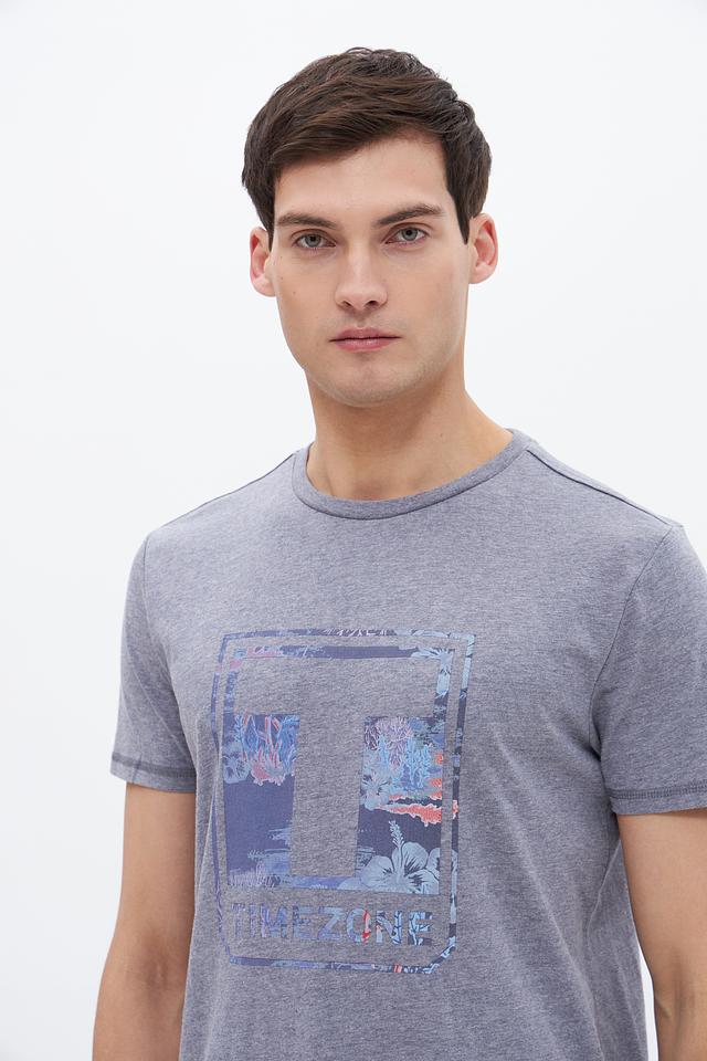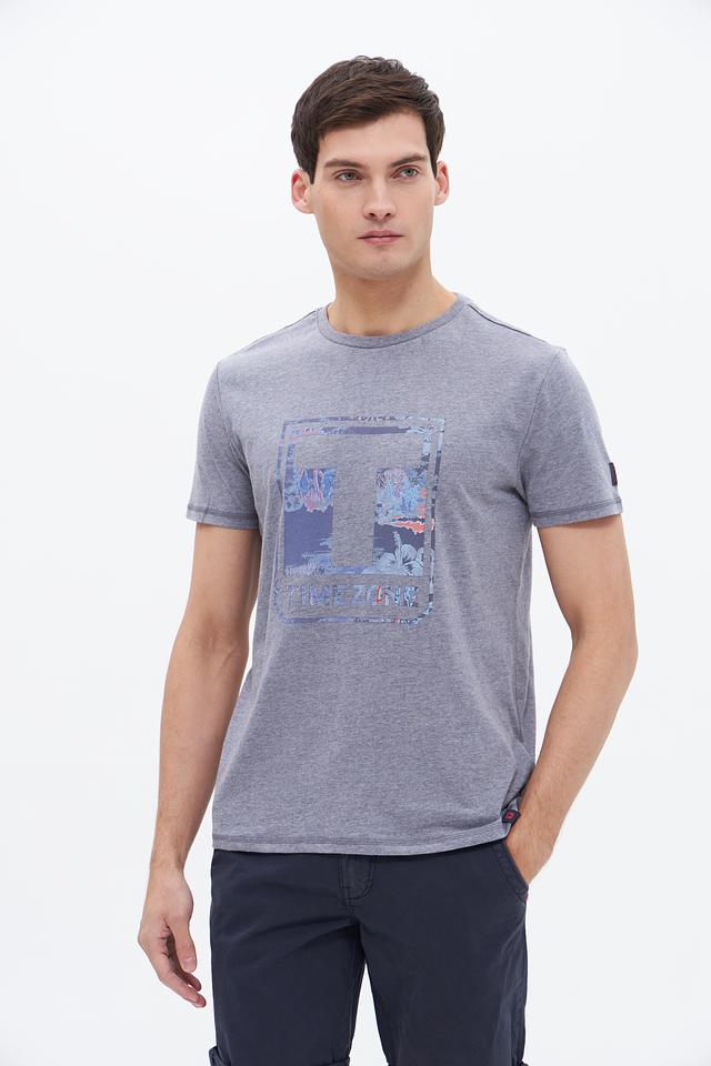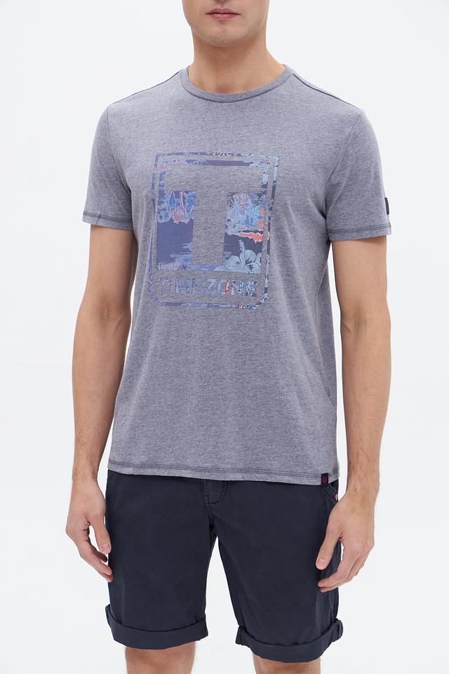 Мужская футболка Time Zone серого меланжевого цвета с ярким графическим принтом на передней части. Изготовлена из мягкого и приятного к телу сочетания хлопка и полиэстера, обеспечивающего комфорт в течение всего дня. Состав: хлопок 60%, полиэстер 40%