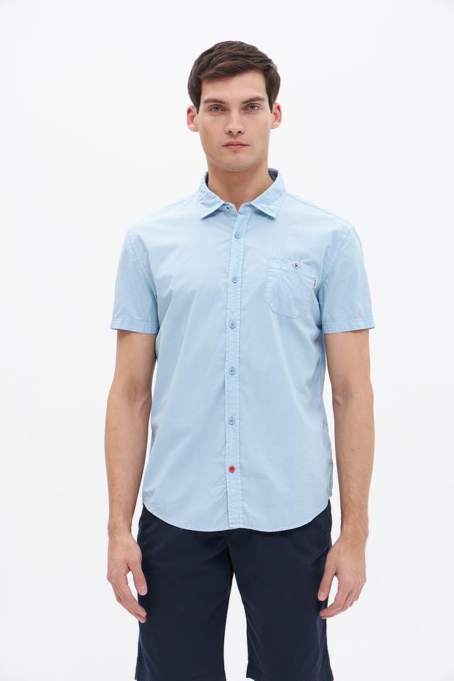 Голубая рубашка с коротким рукавом от Time Zone из 100% хлопка. Классический крой и удобный крой делают эту рубашку отличным выбором для повседневной носки. Состав: хлопок 100%