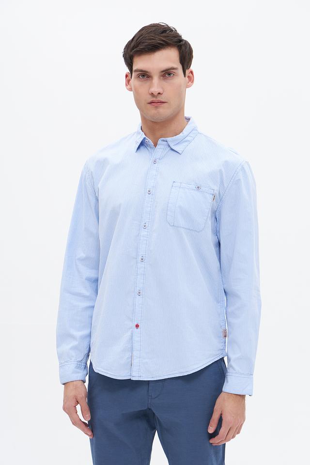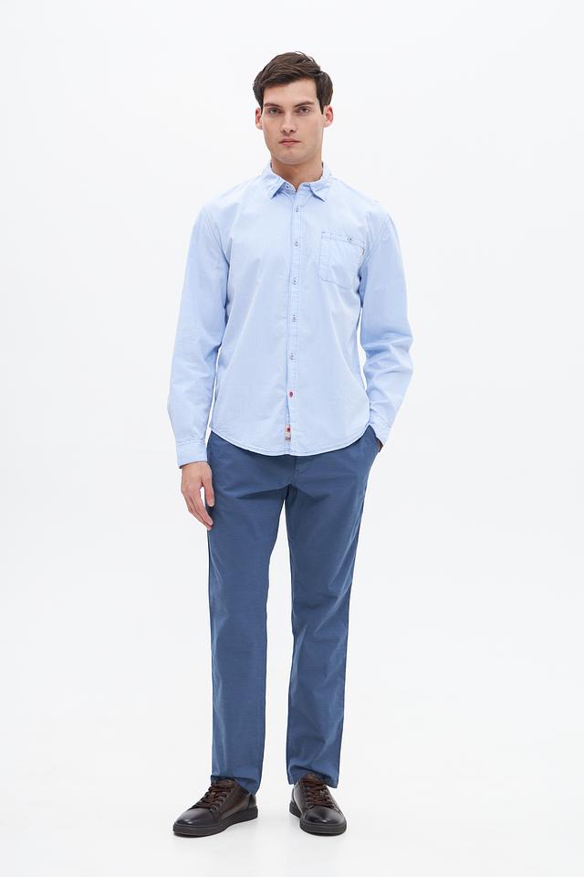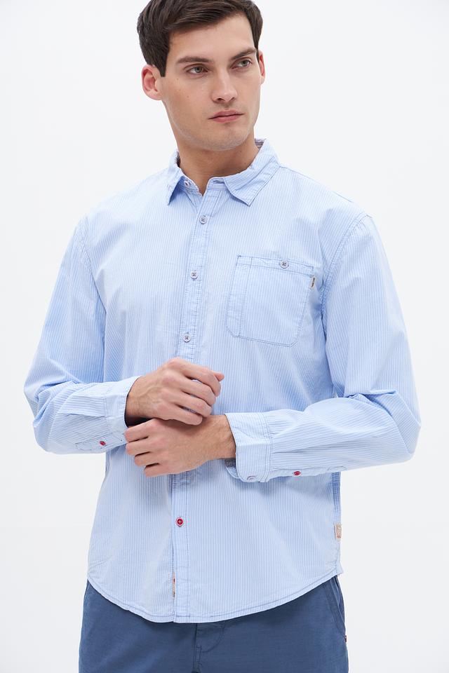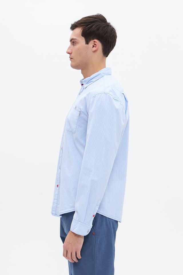 Голубая рубашка Time Zone с длинным рукавом и вертикальной полоской – отличный выбор для создания стильного повседневного образа. Изготовлена из 100% хлопка, обеспечивающего комфорт и воздухопроницаемость. Состав: хлопок 100%