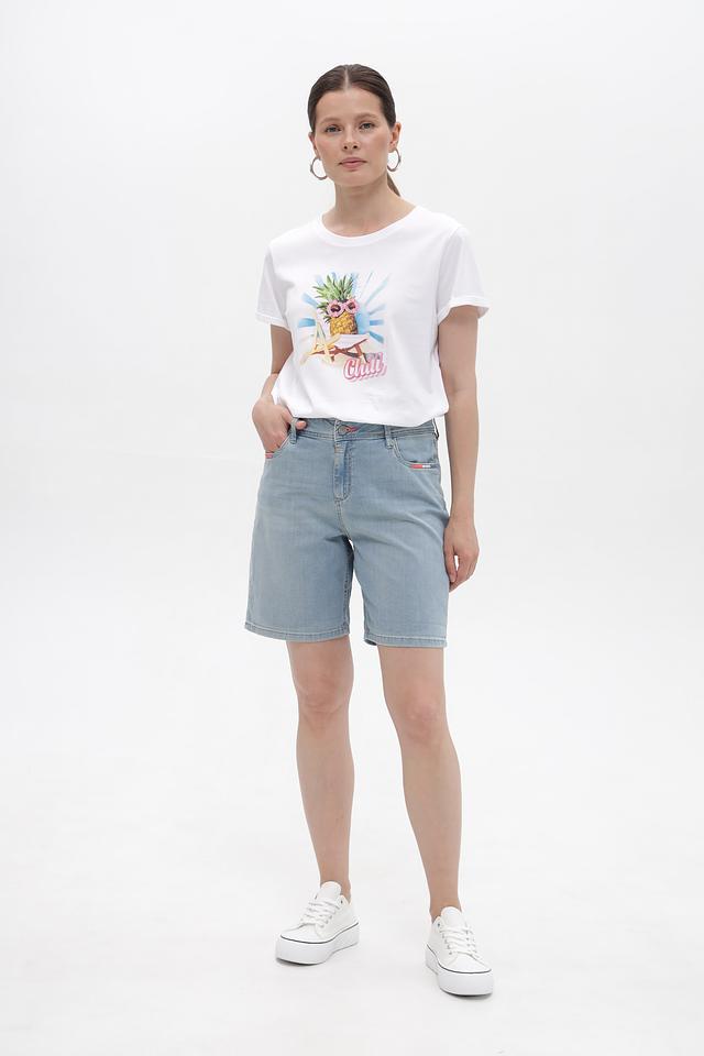 Голубые джинсовые шорты Time Zone — удобная и стильная модель для повседневной носки. Классический крой и деликатная текстура ткани обеспечивают комфорт в жаркую погоду. Состав: хлопок 88%, эластомультиэстер 9%, эластан 3%