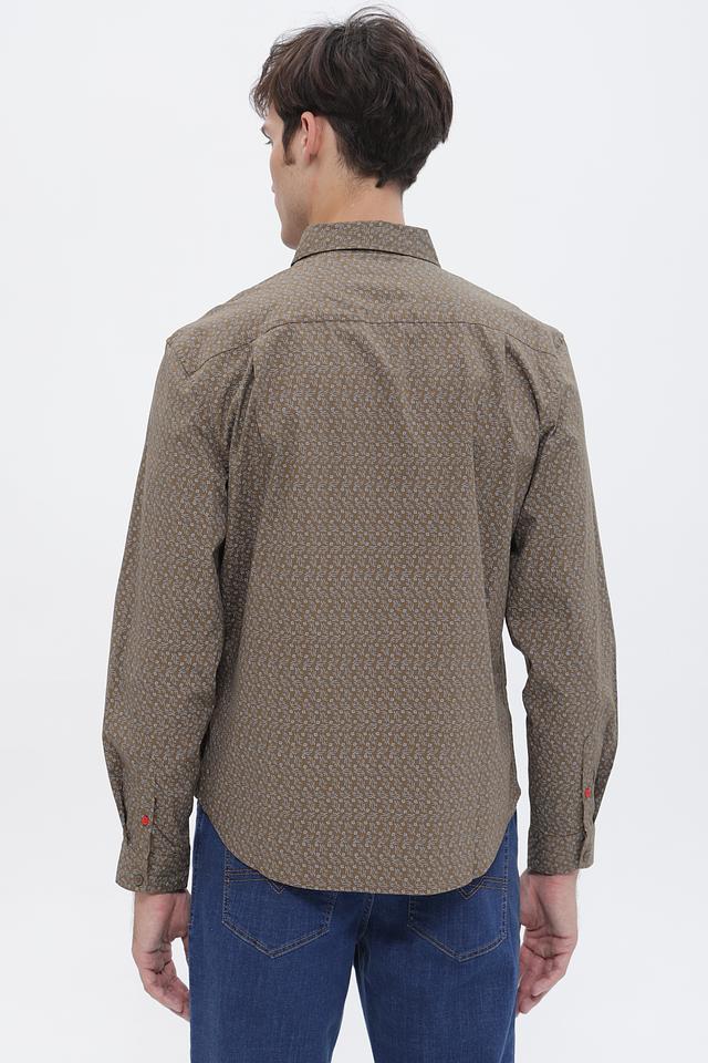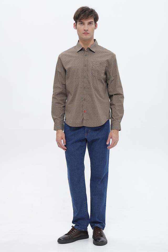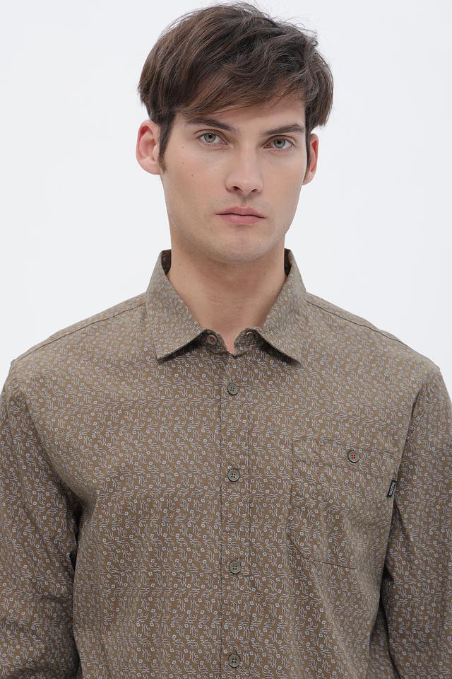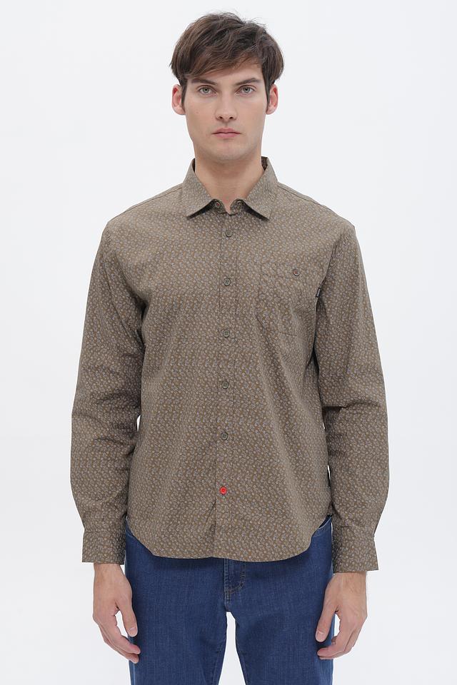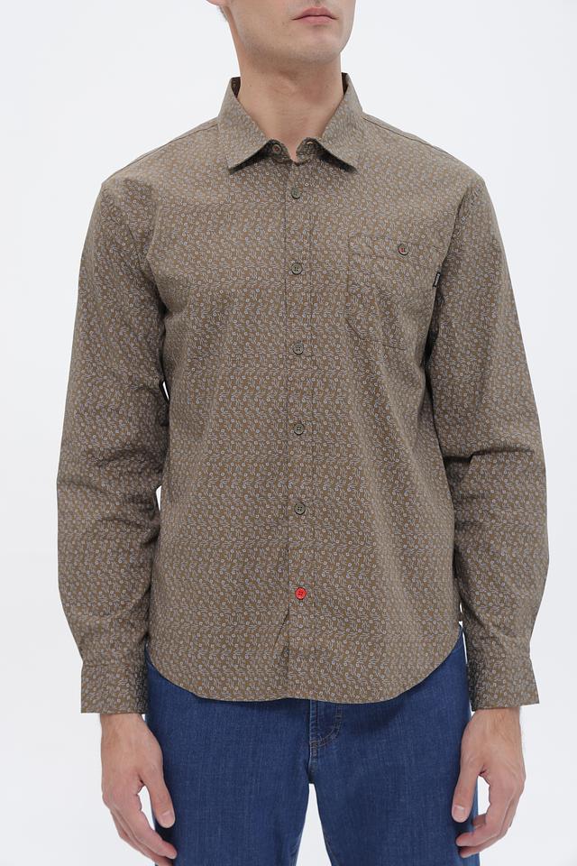 Мужская рубашка Time Zone хаки цвета с мелким принтом – стильное и комфортное решение для повседневного образа. Изготовлена из хлопка с добавлением эластана для удобства носки и сохранения формы. Состав: хлопок 97%, эластан 3%