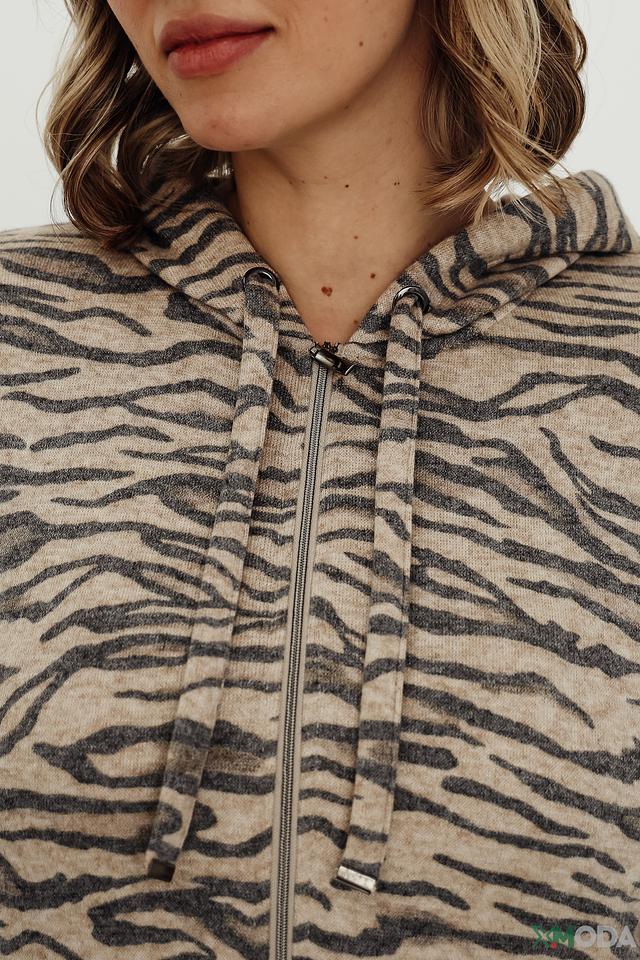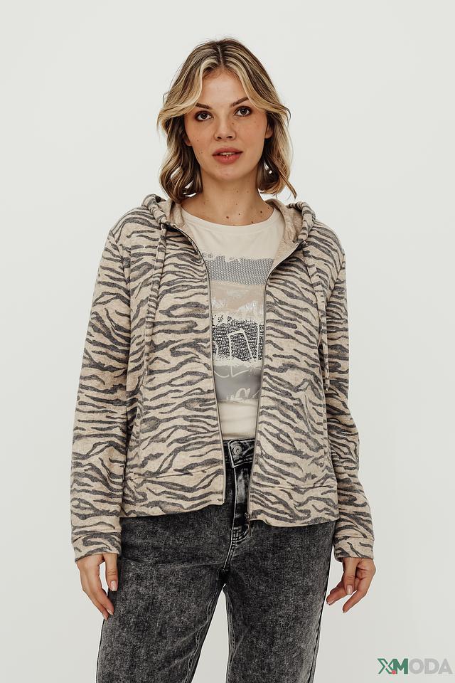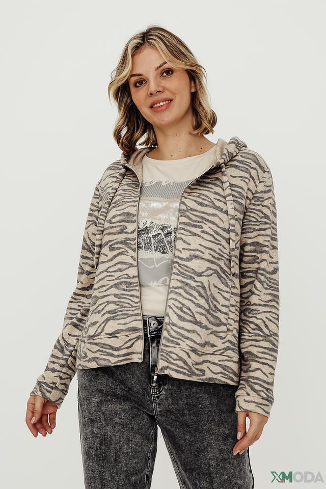 Женская толстовка Frank Walder бежевого цвета с оригинальным полосатым принтом. Модель на молнии с капюшоном станет отличным дополнением к вашему образу. Изготовлена из мягкой и приятной к телу ткани. Состав: вискоза 45%, полиэстер 37%, полиамид 18%