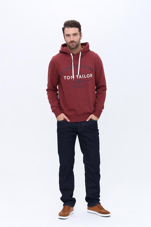 Мужская толстовка Tom Tailor бордового цвета с капюшоном и оригинальным принтом на груди. Изготовлена из мягкого и комфортного хлопка с добавлением полиэстера для износостойкости. Состав: хлопок 60%, полиэстер 40%