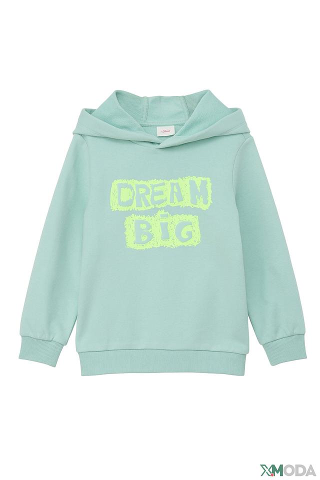 Мятная толстовка s.Oliver для мальчиков с ярким принтом "DREAM BIG". Удобная модель с капюшоном и манжетами обеспечит комфорт и свободу движений. Изготовлена из мягкого хлопка с добавлением полиэстера. Состав: хлопок 90%, полиэстер 10%