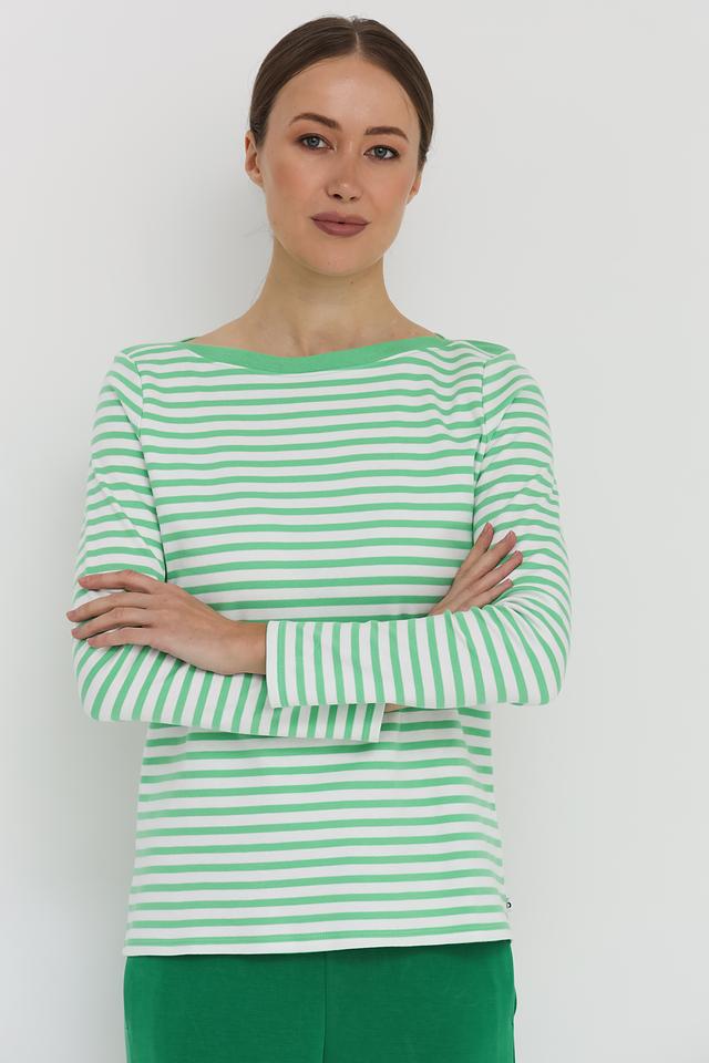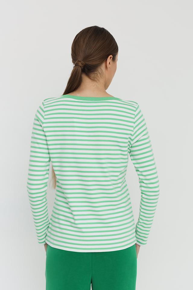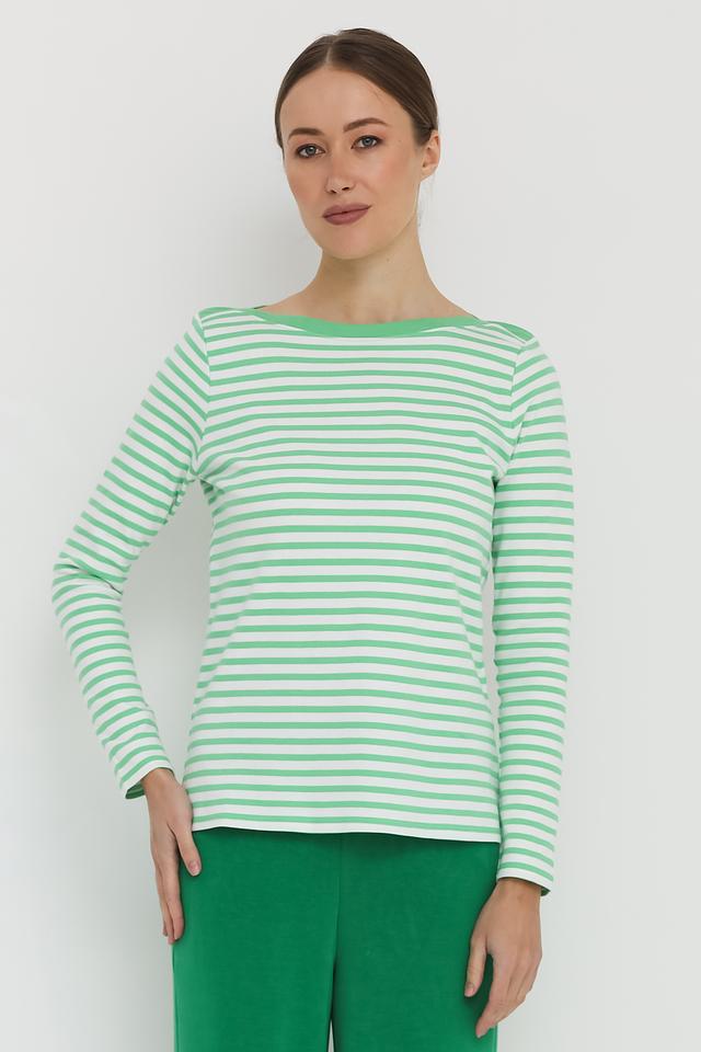 Женский лонгслив Tom Tailor лаймового цвета в классическую полоску. Изготовлен из 100% хлопка, обеспечивающего комфорт и воздухопроницаемость. Отличный выбор для создания повседневных образов. Состав: хлопок 100%