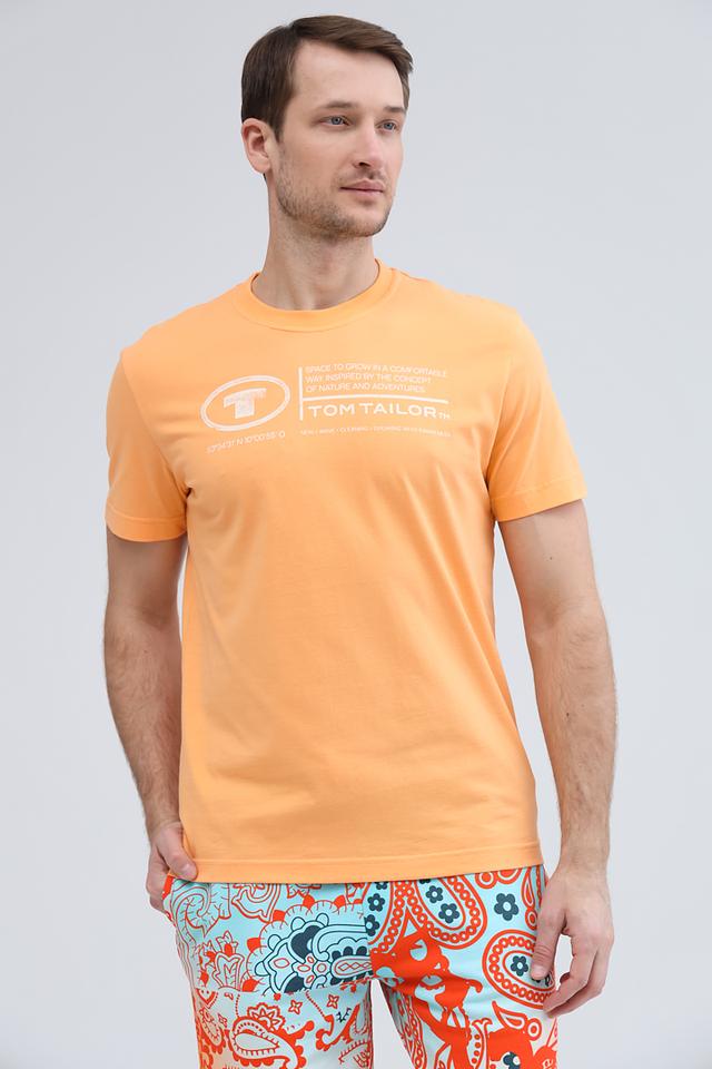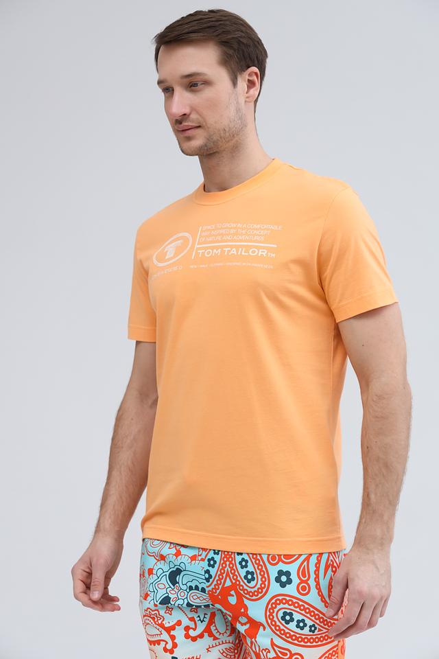 Мужская футболка Tom Tailor персикового цвета – это стильная и комфортная модель из 100% хлопка. Футболка имеет круглый вырез горловины и короткие рукава, а также украшена принтом с логотипом бренда на груди. Состав: хлопок 100%