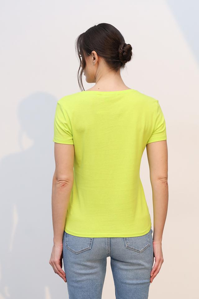 Футболка имеет классический прямой крой, который подходит для любой фигуры. Короткие рукава делают ее идеальной для теплой погоды. Яркий лаймовый цвет добавит вашему образу свежести и оригинальности.