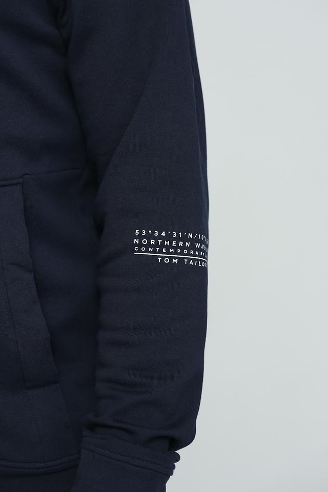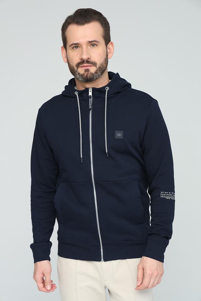 Мужской кардиган Tom Tailor синего цвета с застежкой на молнии и капюшоном. Изготовлен из мягкого хлопка, обеспечивающего комфорт и удобство в носке. Отличный выбор для повседневного образа. Состав: хлопок 100%