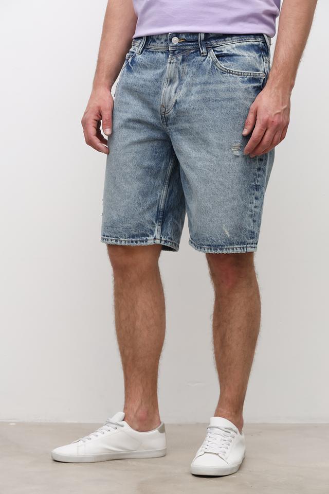 Мужские шорты Tom Tailor голубого цвета в стиле casual, выполнены из 100% хлопка с эффектом потертости и рваными деталями. Идеальный выбор для создания непринужденного летнего образа. Состав: хлопок 100%