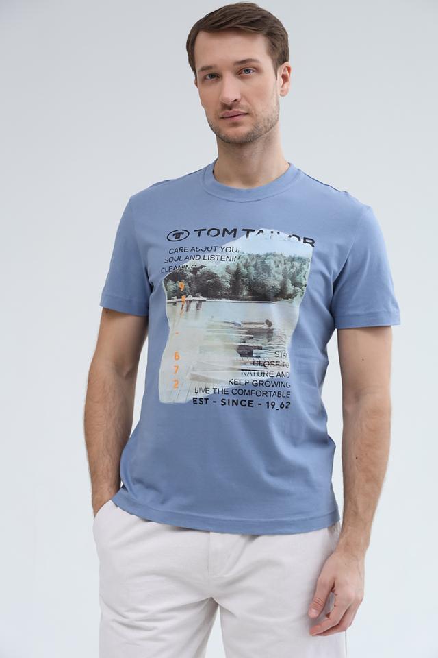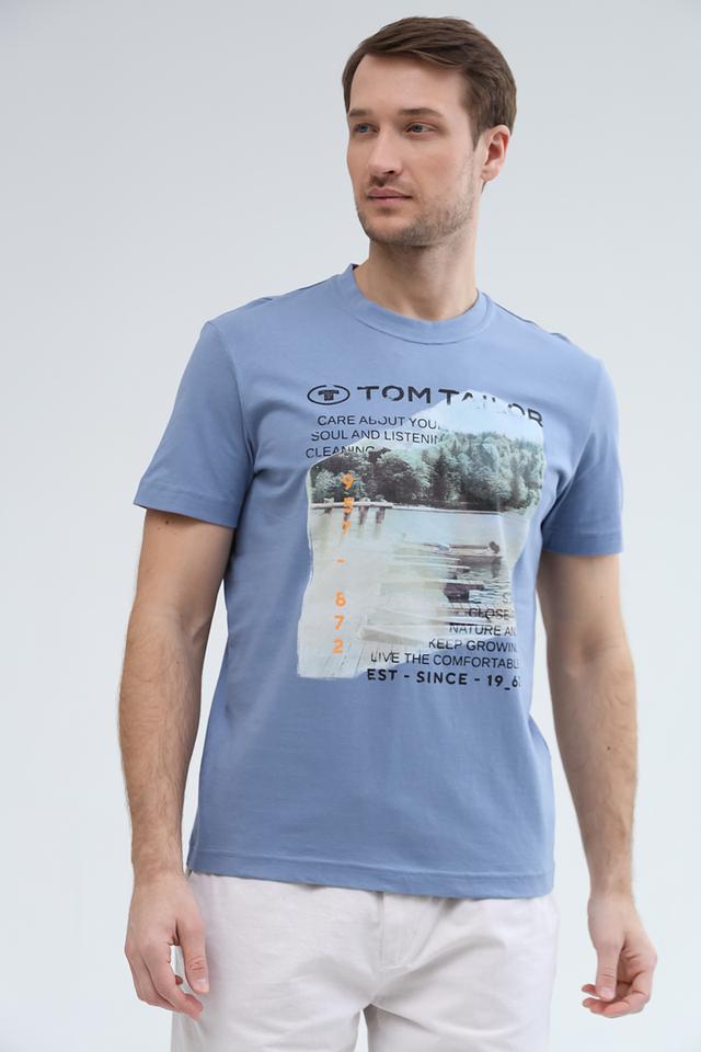 Голубая футболка Tom Tailor с оригинальным принтом – стильный выбор для повседневного образа. Изготовлена из 100% хлопка, обеспечивающего комфорт и воздухопроницаемость. Состав: хлопок 100%