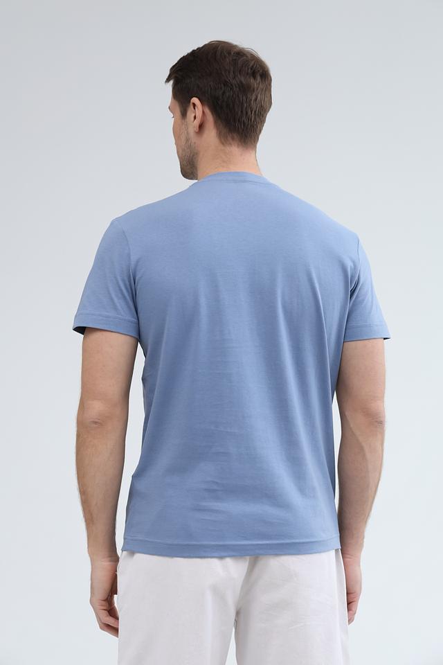 Футболка имеет классический прямой крой, который обеспечивает свободу движений и комфортную посадку по фигуре. Короткие рукава и круглый вырез горловины делают ее идеальной для теплой погоды.