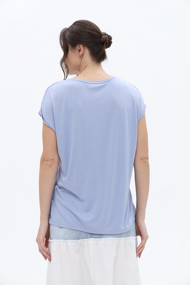 Состав футболки – 73% вискоза и 27% полиэстер. Вискоза обеспечивает мягкость и приятные тактильные ощущения, а полиэстер – устойчивость к деформации и долговечность. Эта футболка идеально подойдет для создания повседневных образов в стиле casual.
