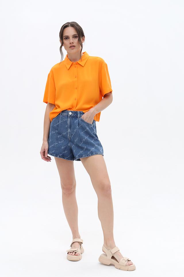 Шорты имеют удобную посадку, пояс на пуговицу и молнию, а также функциональные карманы. Высокая посадка подчеркивает талию и обеспечивает комфортную посадку.