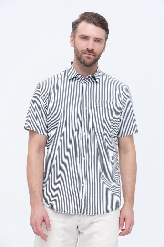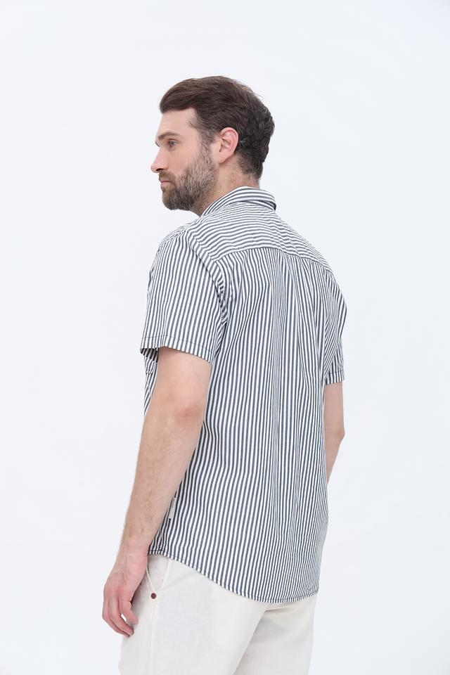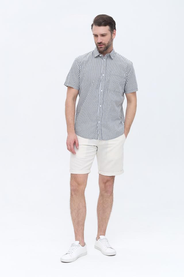 Мужская рубашка Tom Tailor синего цвета с коротким рукавом выполнена в классическом стиле с вертикальной полоской. Изготовлена из 100% хлопка, обеспечивающего комфорт и воздухопроницаемость. Состав: хлопок 100%