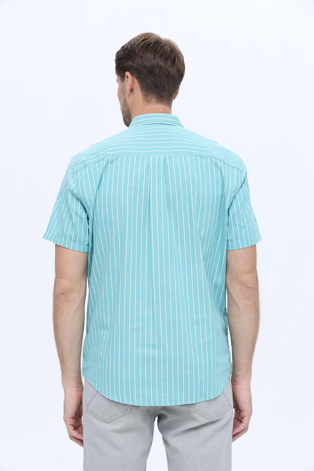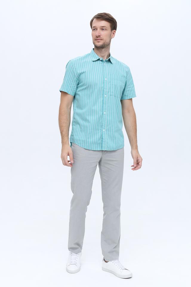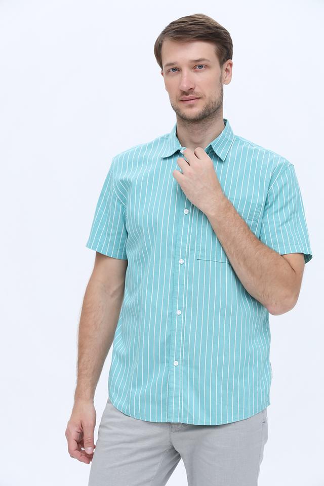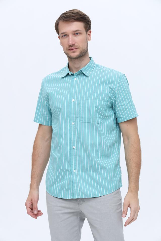 Мужская рубашка Tom Tailor бирюзового цвета с коротким рукавом и вертикальной полоской. Изготовлена из 100% хлопка, обеспечивающего комфорт и воздухопроницаемость. Отличный выбор для повседневного образа. Состав: хлопок 100%
