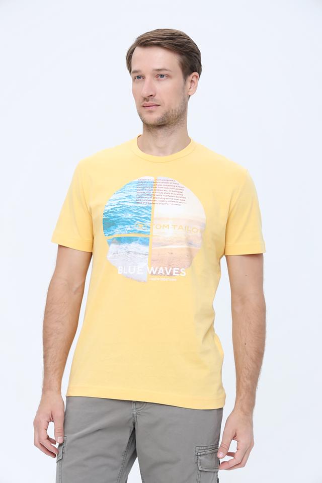 Мужская футболка Tom Tailor жёлтого цвета с ярким принтом "Blue Waves". Изготовлена из 100% хлопка, обеспечивающего комфорт и воздухопроницаемость. Стильный дизайн и удобный крой делают эту футболку отличным выбором для повседневной носки. Состав: хлопок 100%